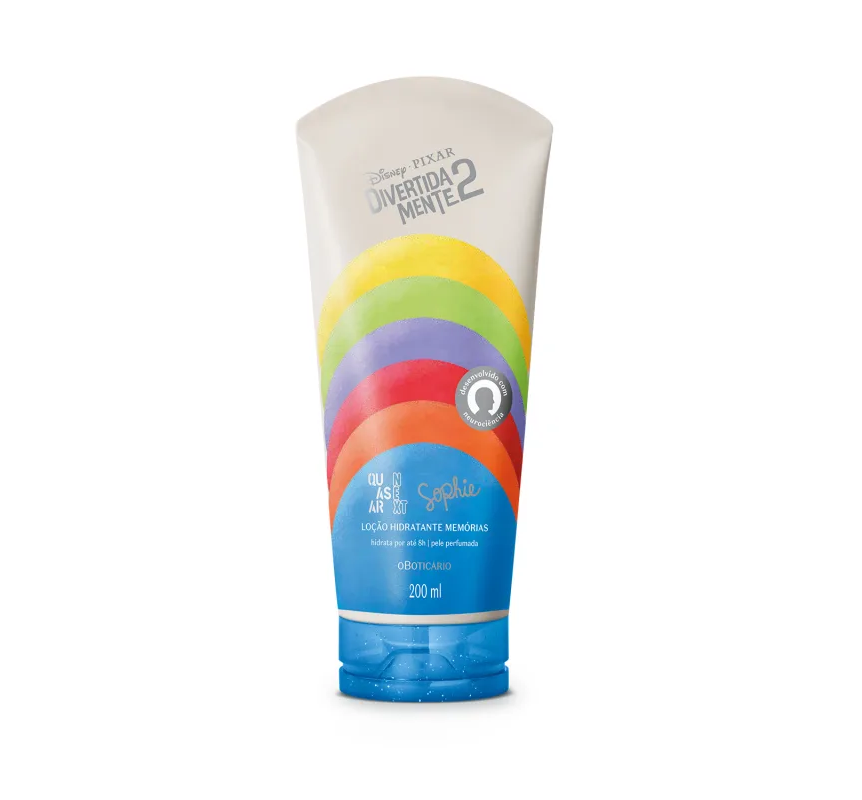 Loção Hidratante Desodorante Corporal Memórias Sophie Quasar Next Divertida Mente 2 200ml<br /> A Loção Hidratante Desodorante Corporal Memórias Sophie Quasar Next Divertida Mente 2 entrega autocuidado com a pele do corpo com hidratação e perfumação, em uma fragrância desenvolvida com ingredientes que despertam sensação de bem-estar e alegria, comprovado através da neurociência*<br /> <br /> <br /> Confira todos os benefícios:<br /> <br /> <br /> -Dermatologicamente testado;<br /> <br /> <br /> -Pediatricamente testado;<br /> <br /> <br /> -Hidratação por até 8 horas;<br /> <br /> <br /> -Hidrata desde a 1a aplicação;<br /> <br /> <br /> -Pele macia e perfumada;<br /> <br /> <br /> -Textura agradável e toque seco;<br /> <br /> <br /> - Super seguro para crianças a partir de 7 anos;<br /> <br /> <br /> - Vegano.<br /> <br /> <br /> #Que cheirinho tem? Sinta o conforto de um Chá Verde com Maçã quentinho como o sofá de casa, os seus segredos por trás de uma floresta de Bambus ou escondido por entre as raízes de Jasmim, e a alegria do Grapefruit e do Ambar. <br /> <br /> <br /> Uma explosão de emoções e perfumação nessa divertida loção hidratante com textura colorida. Seja como for sua emoção, esse hidratante corporal infantil combina com todas!<br /> <br /> <br /> SOBRE A LINHA<br /> <br /> <br /> A sala de controle de dentro da cabeça da Riley, vai passar por uma transformação daquelas! O Boticário embarca em uma jornada de construção de memórias olfativas baseada nas emoções de Divertida Mente 2, da Disney e Pixar.