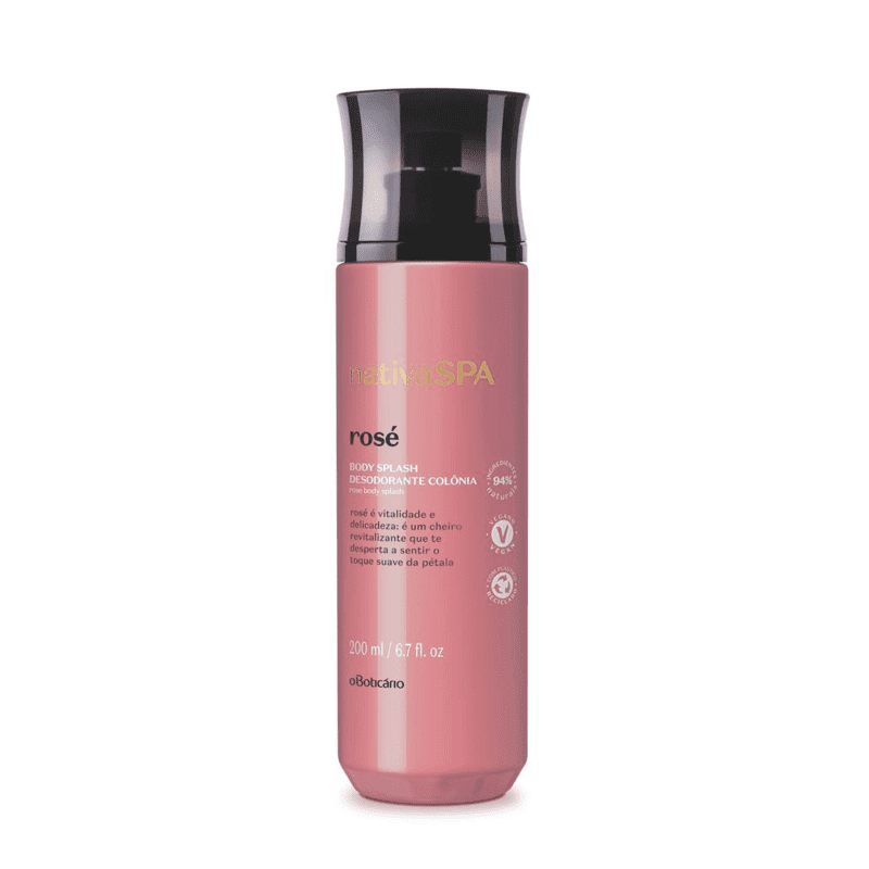 Desodorante Colônia Body Splash Nativa Spa Rosé, 200 ml<br /> <br /> Uma linha de cuidados para o corpo e cabelos criada a partir da combinação de extratos das rosas Damascena, Bourbaniana, Mosqueta e Branca. Uma alquimia perfeita com uma fragrância que traz a faceta mais moderna das flores.Body splash corporal Rosé:- Pode ser usado no corpo todo.<br /> <br /> <br /> <br /> <br /> <br /> <br /> <br /> INGREDIENTES<br /> Álcool desnaturado; Água; Perfume; Caprililglicol; Extrato da flor de Rosa centifolia; Salicilato de benzila; Citronelol; Cumarina; Geraniol; Limoneno.<br /> <br /> <br /> <br /> <br /> <br /> <br /> <br /> <br /> <br /> <br /> COMO USAR<br /> Conselho de Aplicação<br /> <br /> Após o banho, borrife o Body Splash no corpo todo. Reaplique sempre que quiser sentir a pele perfumada.<br /> <br /> <br /> <br /> <br /> <br /> - Ideal para perfumação ao longo do dia.- Família Olfativa: Chypre Floral.- Fórmula vegana com 94,2% dos ingredientes naturais.<br />