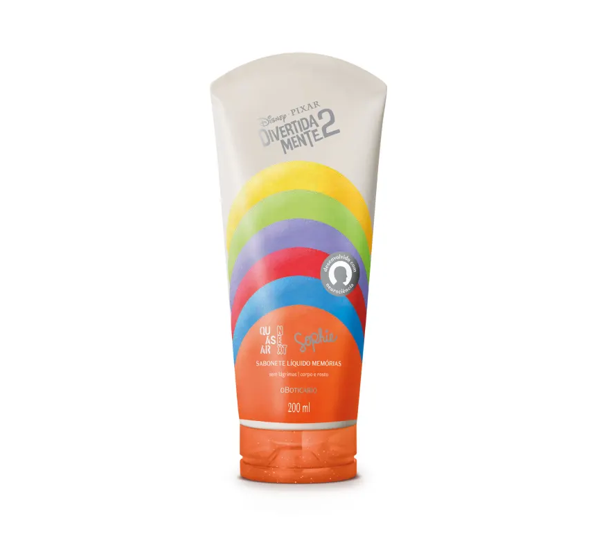 Sabonete Líquido 2 em 1 Memórias Sophie Quasar Next Divertida Mente 2 200ml<br /> Com o Sabonete Líquido 2 em 1 Memórias Sophie Quasar Next Divertida Mente 2, a rotina de bem-estar começa com um banho energético e divertido! <br /> <br /> <br /> 2 em 1, limpa cabelo e corpo, com espuma cremosa e divertida fragrância desenvolvida com ingredientes que despertam sensação de bem-estar e alegria, comprovado através da neurociência*<br /> <br /> <br /> Confira todos os benefícios:<br /> <br /> <br /> -Dermatologicamente testado<br /> <br /> <br /> -Pediatricamente testado<br /> <br /> <br /> -Sem lágrimas<br /> <br /> <br /> -Pele refrescante e perfumada<br /> <br /> <br /> -Fórmula Biodegradável<br /> <br /> <br /> -Textura leve e divertida com espuma cremosa<br /> <br /> <br /> - Super seguro para crianças a partir de 7 anos;<br /> <br /> <br /> - Vegano;