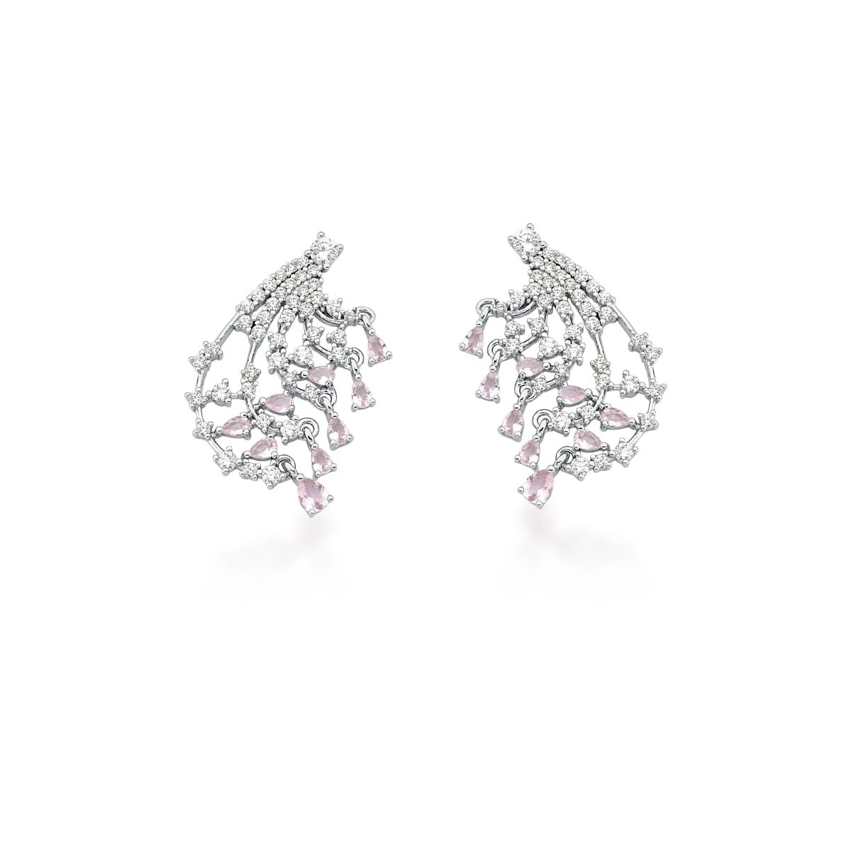 Brinco Curvo com Zircônias em Gota Rosa Banhado a Ródio