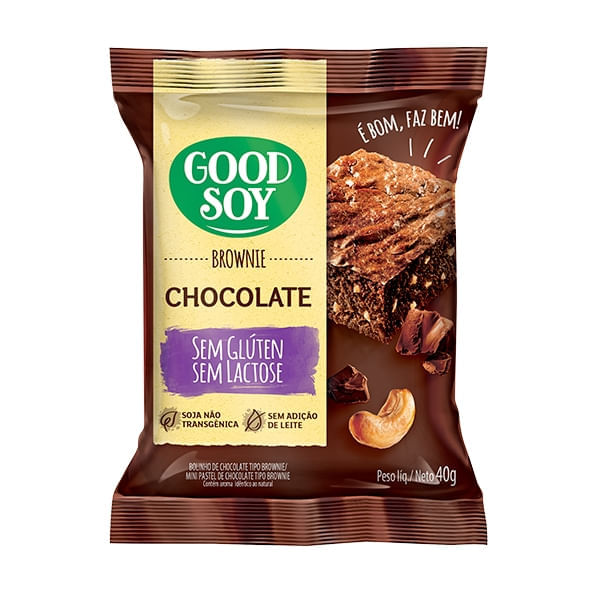 O Brownie de Chocolate, da Good Soy é diferente dos tradicionais, por ser uma opção mais saudável, porém, que não deixa nada a desejar no quesito sabor. O Brownie de Chocolate, da Good Soy é elaborado a partir de ingredientes naturais, tais como farinha de arroz, amido de milho, fécula de mandioca e farinha de soja integral, não contém glúten, sendo uma ótima opção de lanche saudável.