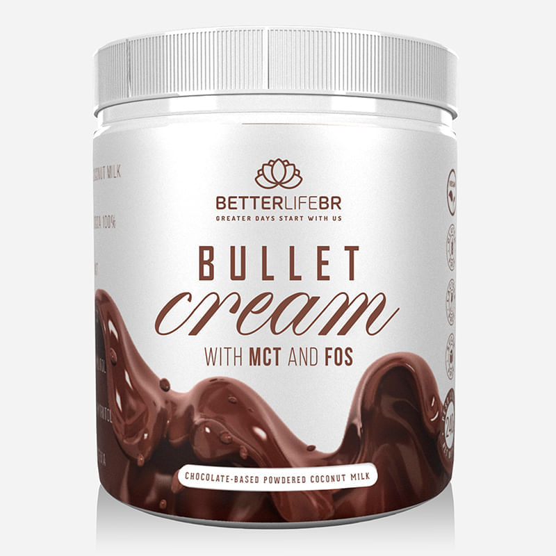 <p> </p> <p>O <strong>Bullet Cream</strong>, da <strong>Better Life</strong>, é um complemento alimentar que pode ser utilizado como achocolatado, formulado com MCT (triglicerídeos de cadeia média), FOS (Frutooligossacarídeos), de leite de coco orgânico, cacau, algas marinhas e outros ingredientes nutritivos.</p> <p>Produto vegano e levemente adoçado com adoçantes 100% naturais e de baixo índice glicêmico. Possui fórmula exclusiva e patenteada.</p> Recomendação de consumo: <p>Dilua uma dose em 100ml de água quente, fria ou outra bebida de sua preferência e adoce a gosto com xilitol ou erytritol se achar necessário.</p> <p>Misture em vitaminas de frutas ou com leite vegetal. Pode ser utilizado em receitas.</p> <p>Dica: bata o achocolatado com misturador para a sua melhor diluição<strong>.</strong></p> Por que escolher este produto? <p>· Sem adição de açúcar </p> <p>· Plant based</p> <p>· Com adoçantes naturais</p> <p>· Não contém glúten</p> <p>· Sem conservantes artificiais</p> Sobre a marca: <p> </p> <p>A <strong>Better Life</strong> Brasil foi criada por empreendedores gaúchos ao longo de 15 anos, que tiveram a ideia de levar ao consumidor alimentos de qualidade, saudáveis, funcionais e exclusivos, diferente de tudo que já esteve no mercado. Oferecem produtos como achocolatados, adoçantes e cafés diferenciados, a fim de proporcionar energia, saúde e bem-estar para uma vida melhor. Uma empresa inovadora, em todos os sentidos.</p> <p> </p>