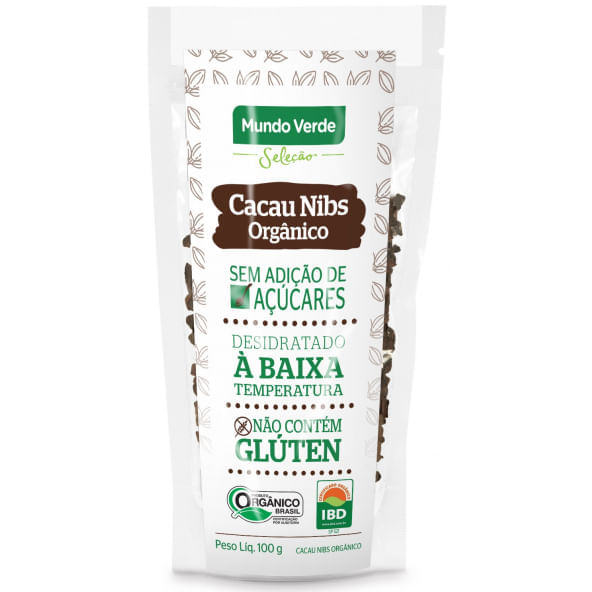 Informações técnicas do produto:<br>_x000D_ <br>_x000D_ Os Nibs de Cacau Orgânico, da Mundo Verde Seleção, são feitos com amêndoa de cacau orgânico desidratada, descascada e desidratada em baixas temperaturas, sem adição de açúcar.<br>_x000D_ <br>_x000D_ Sobre o ingrediente:<br>_x000D_ Amêndoa de cacau: contém substâncias que apresentam potente ação antioxidante, além de diversas vitaminas e minerais.<br>_x000D_ Recomendação de consumo:<br>_x000D_ <br>_x000D_ Pode ser consumido puro, com frutas, iogurtes, no preparo de cookies, bolos, tortas e outras preparações da sua preferência.<br>_x000D_ <br>_x000D_ Por que escolher este produto?<br>_x000D_ Orgânico<br>_x000D_ Sem conservantes<br>_x000D_ Livre de aditivos químicos<br>_x000D_ Sem glúten<br>_x000D_ Sem açúcar<br>_x000D_ Não contém adição de óleos vegetais<br>_x000D_ Apenas 1 ingrediente<br>_x000D_ Sobre a marca:<br>_x000D_ <br>_x000D_ A Mundo Verde Seleção é uma linha de produtos para quem quer ter uma vida mais saudável e gostosa. A marca quer ajudar a colocar essas escolhas em prática. A paixão e conhecimento pelos alimentos, nutrientes, aromas e sabores permitem a seleção das melhores opções saudáveis para qualquer ocasião. Conheça a linha completa Mundo Verde Seleção, com inúmeros produtos saudáveis e gostosos para facilitar seu dia a dia.