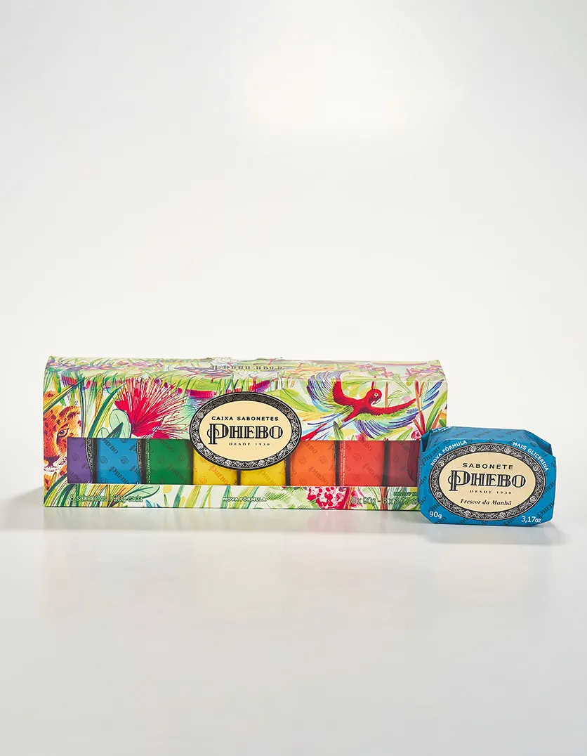 Kit com edição limitada em homenagem à floresta amazônica, berço da Perfumaria Phebo. Contém as 8 fragrâncias dos sabonetes da linha Tradicional. Os sabonetes são produzidos com glicerina pura e têm base vegetal, o que permite uma limpeza profunda sem agredir a pele. A base vegetal também possibilita maior fixação da fragrância na pele, deixando-a perfumada por muito mais tempo. Recomendado para todos os tipos de pele. Uso diário.Conteúdo: 8 x 90g. Não contém ingredientes de origem animal.