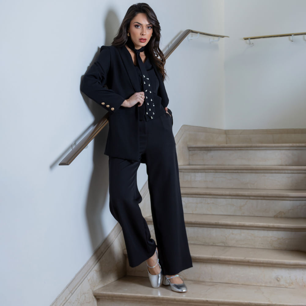 A calça alfaiataria reta é uma peça icônica que personifica a sofisticação e a versatilidade; Esta tendência clássica nunca sai de moda, oferecendo uma abordagem atemporal que é tão elegante quanto prática; O caimento impecável da calça alfaiataria reta é outro destaque; Ela valoriza a figura de forma equilibrada, criando uma linha elegante que é lisonjeira para todos os tipos de corpo; Em resumo, a calça alfaiataria reta é uma peça essencial em qualquer guarda-roupa, uma verdadeira aliada da elegância e versatilidade;<br>.<br><br>Produto: Calça Alfaiataria Reta Preto<br>Categoria: Calça<br>Cor: Preto <br>Tecido: Alfaiataria<br>Composição: 95% Poliester/ 5% Elastano<br>Peso : 300g<br>Gênero: Feminino<br>Marca: Vértice<br><br>Medidas da Modelo<br>Altura: 1,70 cm<br>Busto: 89 cm<br>Cintura: 65 cm<br>Quadril: 94 cm<br>A MODELO VESTE O TAMANHO P<br>.<br>Medidas.<br>P - Busto até 90 cm l Cintura até 71 cm l Quadril até 99 Cm.<br>M - Busto até 96 cm l Cintura até 77 cm l Quadril até 102 cm.<br>G - Busto até 102 cm l Cintura 83 cm l Quadril 111 cm.<br>GG - Busto 108 cm l Cintura até 89 cm l Quadril até 117 cm.<br>EGG - Busto até 114 cm l Cintura até 95 cm l Quadril até 123 cm.<br> <br> <br> <br> <br> <br> <br> <br> <br> <br> <br>