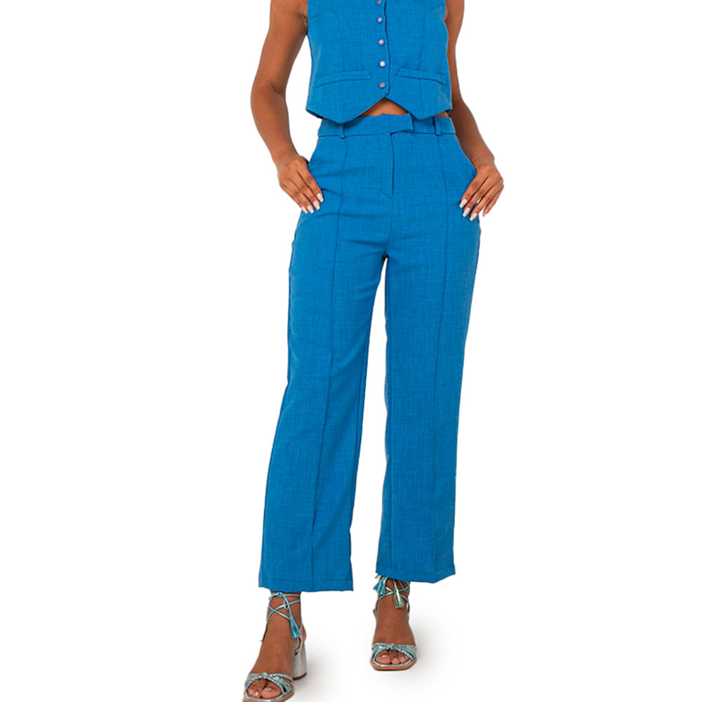 Calça cigarrete feminina pantalona confeccionada em linho, um tecido natural e com ótima respirabilidade; A modelagem cigarrete possui comprimento levemente curto, cintura alta com cós aplicado com passantes e bolsas laterais no modelo faca; Combine sua calça cigarrete em linho em um visual casual; Aposte com camisas trabalhadas e sandálias de salto bloco para um look elegante e ideal para o home office, já para um visual moderno, aposte com top de laise e rasteias coloridas; A calça cigarrete é um clássico no guarda-roupa feminino e ideal para um look trendy de verão, aposte!<br><br><br>.<br><br><br>Produto : Calça Cigarrete Linho Azul<br>Código : CAL2216NUD<br>Categoria: Calça<br>Cor: Azul<br>Tecido: Linho<br>Composição: 20% Linho/ 40% Viscose/ 40% Poliester<br>Peso :300 g<br>Gênero: Feminino<br>Marca: Vértice<br><br>.<br><br><br>Medidas<br><br>P - Busto até 90 cm l Cintura até 71 cm l Quadril até 99 Cm.<br>M - Busto até 96 cm l Cintura até 77 cm l Quadril até 102 cm.<br>G - Busto até 102 cm l Cintura 83 cm l Quadril 111 cm.<br>GG - Busto 108 cm l Cintura até 89 cm l Quadril até 117 cm.<br>EGG - Busto até 114 cm l Cintura até 95 cm l Quadril até 123 cm.<br><br><br><br><br><br><br><br><br><br><br><br><br><br><br><br><br><br><br><br><br><br>