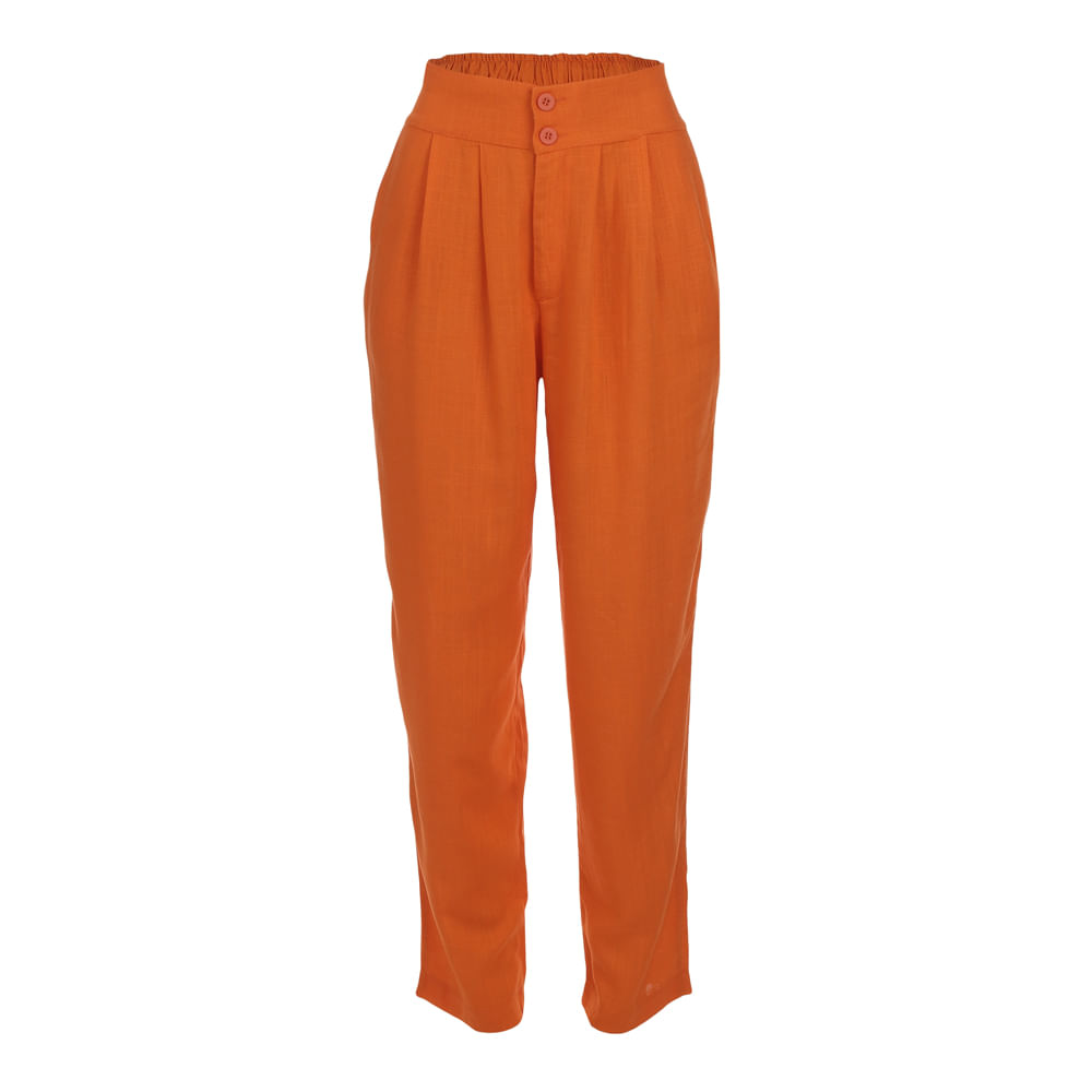 A Calça Slouchy tem a cintura mais alta, já no quadril e nas coxas ela é um pouco mais folgada e levemente justa nos tornozelos um modelo muito versátil, você pode usar tanto em um office look ou em um look mais versátil e mais despojado. A Calça Slouchy pode ser usada em todas as estações, com regatas com um blazer se quiser um look meia estação ou office look com sandálias de salto até rasteiras, ela é um modelo perfeito para quem gosta de conforto sem abrir mão de estilo, a calça slouchy virou a queridinha entre as fashionistas seja qual for sua escolha você vai arrasar nas suas produções. A Calça Slouchy não foi criada com intuito estético e muito menos para o público feminino, a calça era utilizada pelos mineiros durante seus trabalhos na França. Em 1873 Levi Strauss da Califórnia e seu amigo alfaiate Jacob Davis transformaram a peça em sucesso. . Produto: Calça linho Jogger Laranja Código: CAL2201LAR Categoria: Calças. Cor: Laranja Tecido :Linho Composição: 80% Viscose 20% Linho Peso: 355 G Gênero: Feminino. Marca: Vértice. . Medidas. P - Busto até 90 cm l Cintura até 71 cm l Quadril até 99 Cm. M - Busto até 96 cm l Cintura até 77 cm l Quadril até 102 cm. G - Busto até 102 cm l Cintura 83 cm l Quadril 111 cm. GG - Busto 108 cm l Cintura até 89 cm l Quadril até 117 cm. EGG - Busto até 114 cm l Cintura até 95 cm l Quadril até 123 cm.