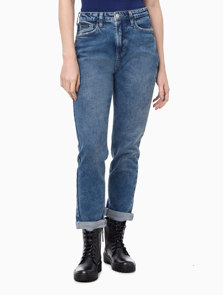 Eleve o seu estilo com a Calça Jeans Feminina <b><a href="https://www.calvinklein.com.br/modelagem-mom" target="_blank">Mom</a></b> 5 Pockets Calvin Klein Jeans, um ícone de elegância e atitude dos anos 90. A modelagem realça as curvas naturais do corpo, garantindo conforto e estilo. A cintura alta ajuda a alongar as pernas e proporciona um ajuste perfeito, enquanto as pernas afuniladas até a barra adicionam um toque contemporâneo a este clássico retrô. <br> <br> <i>CARACTERÍSTICAS</i> <hr> <br> • Modelagem Mom<br> • Lavagem em Tom Médio<br> • Confeccionada em Jeans com Stretch<br> • Cintura Alta<br> • Slim Até o Quadril<br> • Afunilada na Perna<br> • 5 Pockets<br> • Fechamento por Zíper e Botão<br>