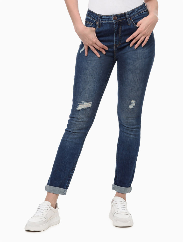 A Calça Jeans Feminina New <b><a href="https://www.calvinklein.com.br/modelagem-skinny" target="_blank">Skinny</a></b> Embossed Calvin Klein Jeans é perfeita para quem busca um visual contemporâneo e ajuste perfeito. Essa calça abraça o corpo, desde a cintura até a barra, com pernas justas que criam um visual marcante. É uma escolha perfeita para qualquer tipo de corpo, se adaptando ao seu biotipo, para proporcionar um look moderno e elegante. <br> <br> <i>CARACTERÍSTICAS</i> <hr> <br> • Lavagem em Tom Escuro <br> • Modelagem New Skinny<br> • Confeccionada em Jeans com Stretch<br> • Perna Levemente Justa<br> • Gancho Levemente Deslocado<br> • Filigrana Embossed nos Bolsos Traseiros<br> • Cintura Média<br> • Puídos<br> • 5 Pockets<br> • Fechamento por Zíper e Botão<br>