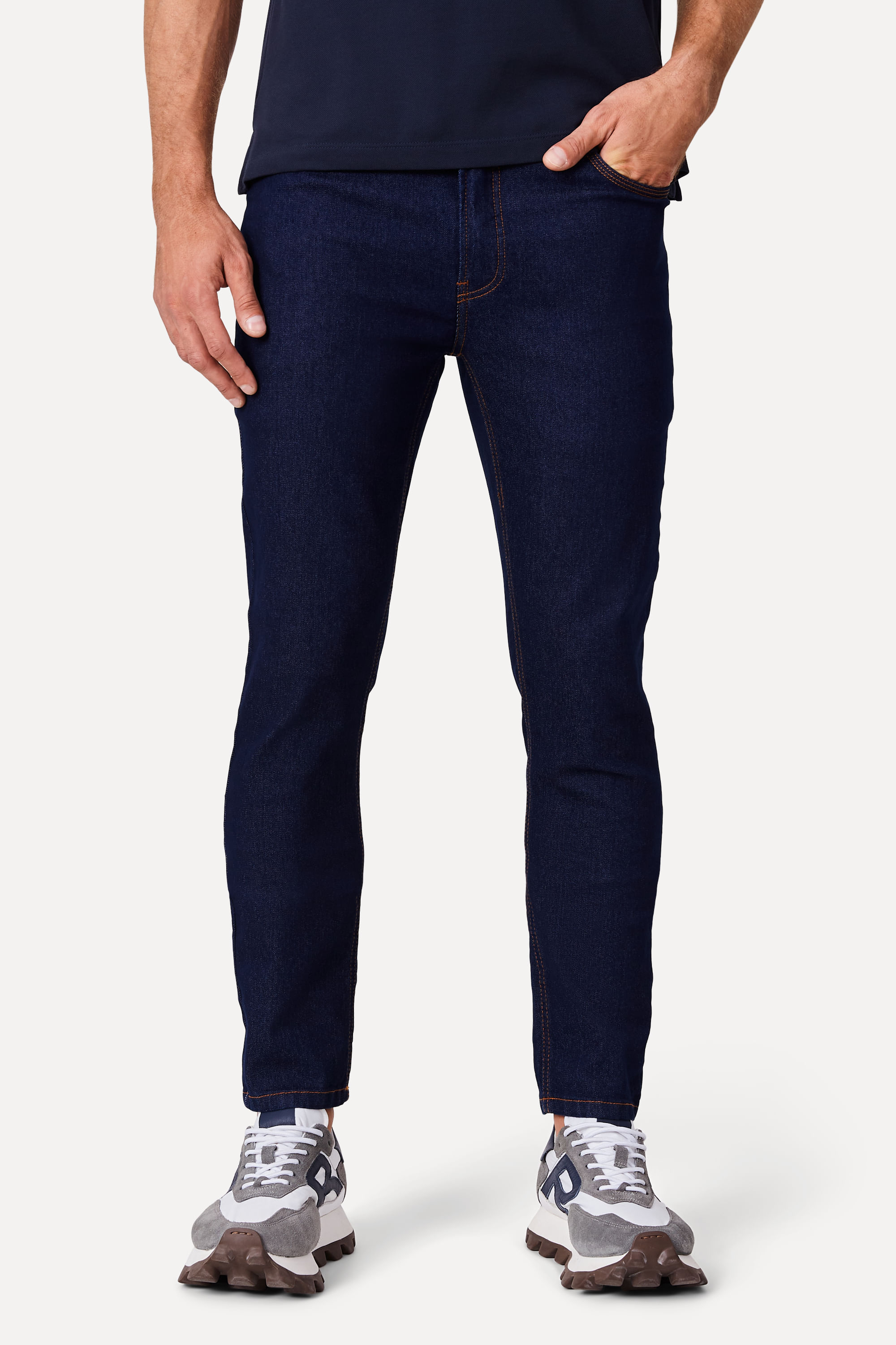 Procurando calça pro trabalho ou pro rolé? Aposte na Calça Jeans Skinny Eli! Feita em algodão, poliéster e elastano de alta qualidade, proporciona muito conforto. Seu corte skinny é mais ajustado ao corpo, valorizando sua silhueta. Possui passador para cintos e bolsos. Combine com camisas ou camisetas e tênis. O modelo tem 1,89 de altura e veste 40. Comprando esta peça, você viabiliza cinco pratos de comida através do nosso Programa 1P5P. Calça produzida eticamente no Brasil.