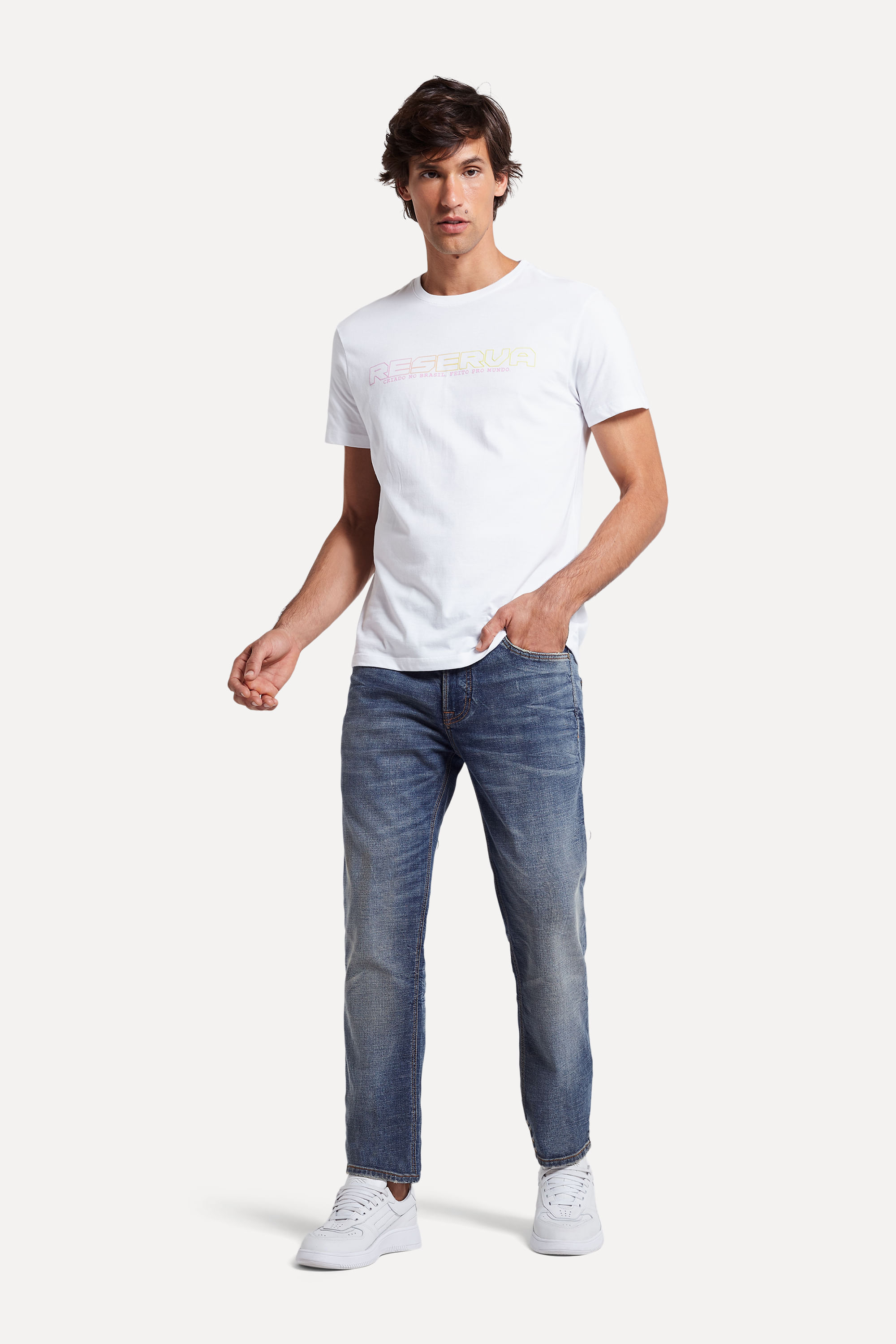 A Calca Jeans Slim Viajante é ideal pra ser usada em momentos casuais. Calça Reserva produzida eticamente no Brasil. Comprando esta peça, você viabiliza cinco pratos de comida através do nosso programa 1P5P.