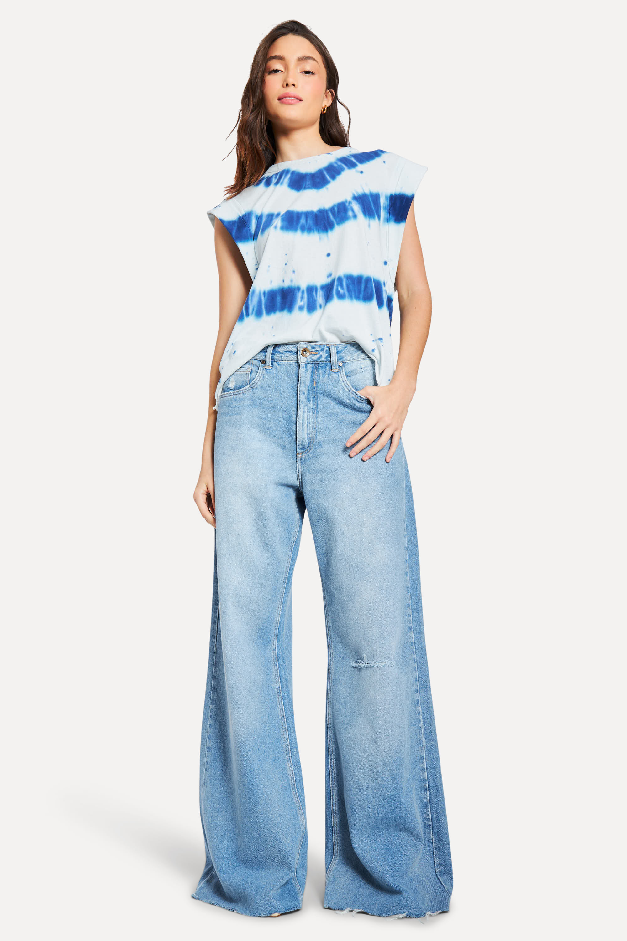 Calca Jeans Wide Leg High