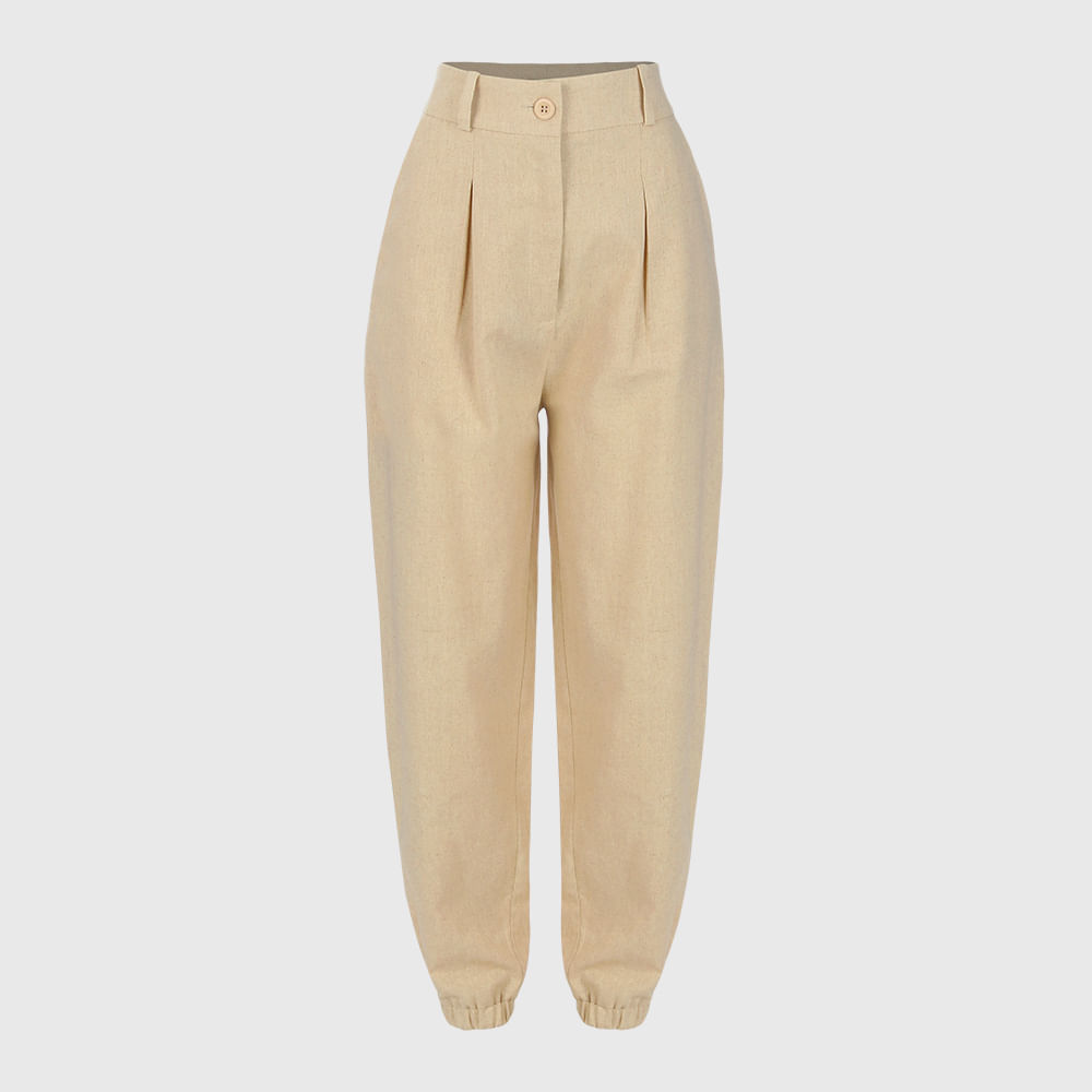 A Calça Linho Jogger com o tecido leve trazendo conforto e elegância em uma só peça, perfeita para office look ou um visual mais despojado caso queira.<br>A calça linho jogger pode ser combinada com uma sandália de salto, ou um Oxford uma das opções para suas produções, você pode combinar com peças de seda também fica um look bem elegante, seja qual for sua escolha ela da um Up nos seus looks.<br>Poucas pessoas sabem que o linho é feito de fibra natural o tecido estrutural e ao mesmo tempo leve fica perfeito para os dias mais quentes em um office look, se você quer ser adepta do eco fashion escolha a sua e arrase<br><br>.<br><br>Produto: Calça linho Jogger Cru<br>Código: CAL2201CRU<br>Categoria: Calças.<br>Cor: CRU<br>Tecido :Linho<br>Composição:70% Viscose 30% linho<br>Peso: 355 G<br>Gênero: Feminino.<br>Marca: Vértice.. Medidas. P - Busto até 90 cm l Cintura até 71 cm l Quadril até 99 Cm. M - Busto até 96 cm l Cintura até 77 cm l Quadril até 102 cm. G - Busto até 102 cm l Cintura 83 cm l Quadril 111 cm. GG - Busto 108 cm l Cintura até 89 cm l Quadril até 117 cm. EGG - Busto até 114 cm l Cintura até 95 cm l Quadril até 123 cm.