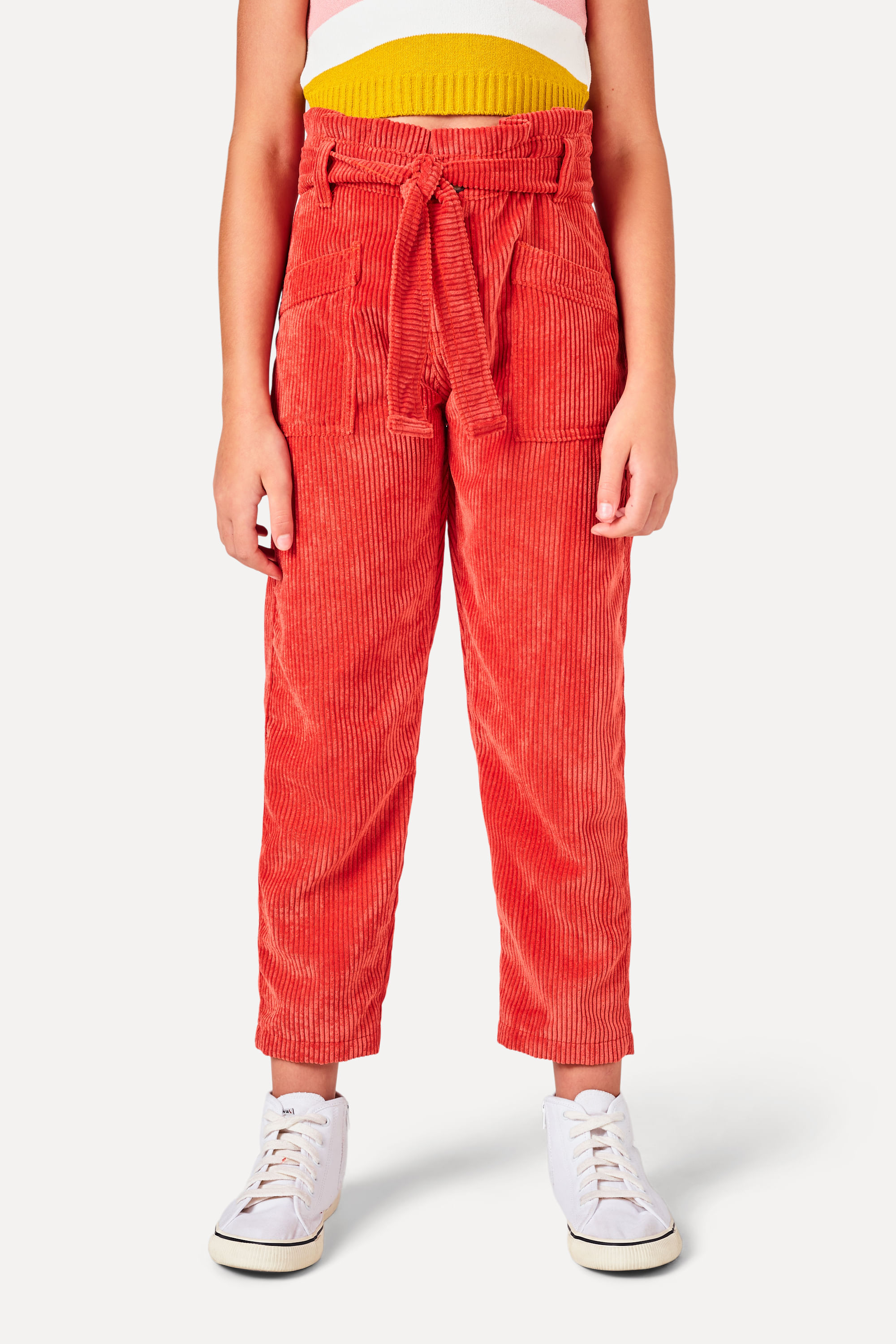 Calça da Coleção A peça é confeccionada no veludo cotelê, com cintura alta estilo clochard e faixa na cintura para amarração. O botão é corozo, assim como a placa Pica pau que assina a peça externamente. A calça possui regulador interno com elástico e botões. Produzido eticamente no Brasil. Comprando esta peça, você complementa cinco pratos de comida através do nosso programa 1P=5P.