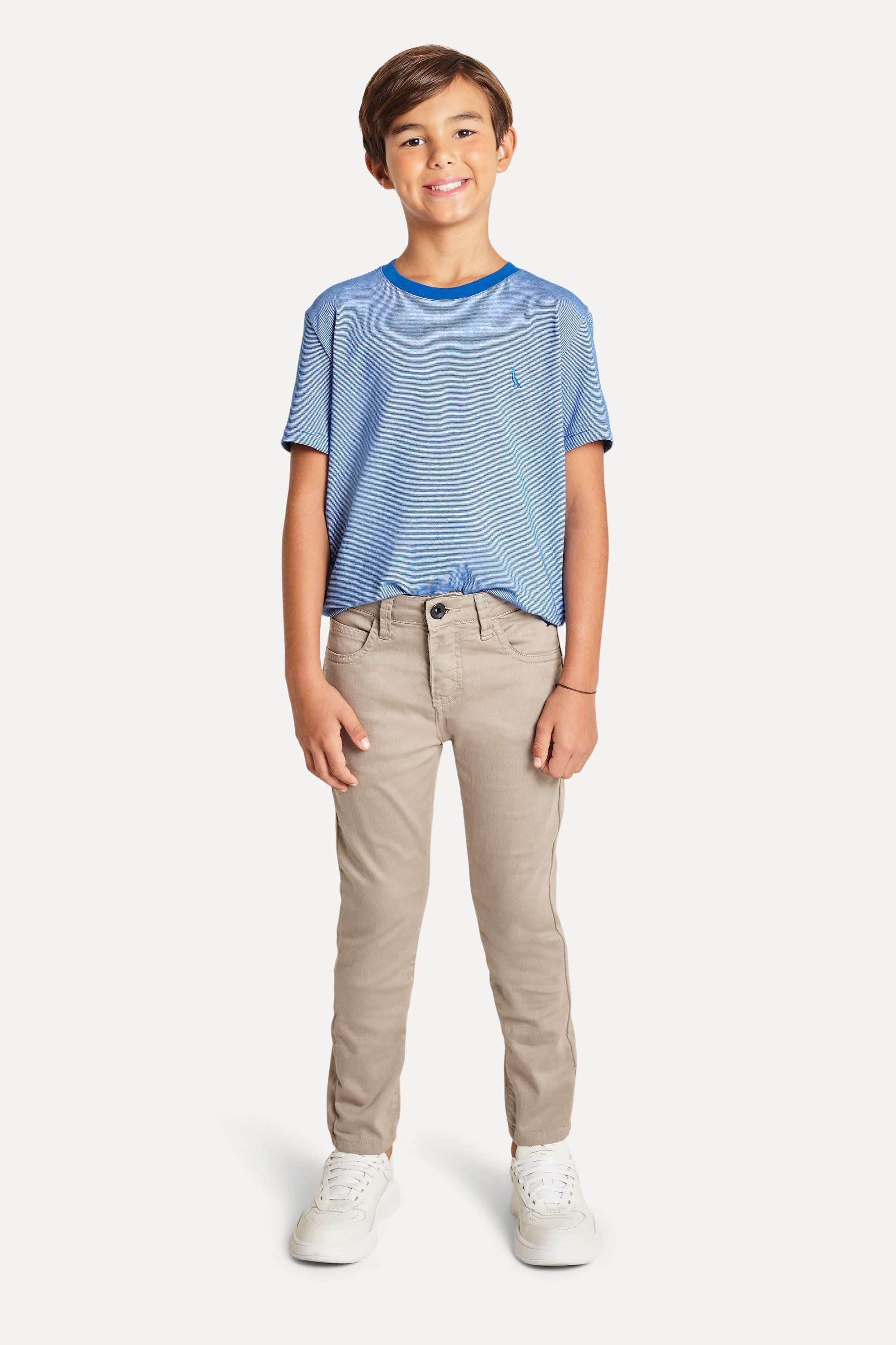 Calça da linha infantil Reserva Mini. A peça ganhou modelagem skinny em cores claras, super coringas para combinar com qualquer parte de cima. Com camisetas compõe looks básicos para o dia a dia e com camisas sociais vai até para festinhas! Produzido eticamente no Brasil. Comprando esta peça, você complementa cinco pratos de comida através do nosso programa 1P=5P.