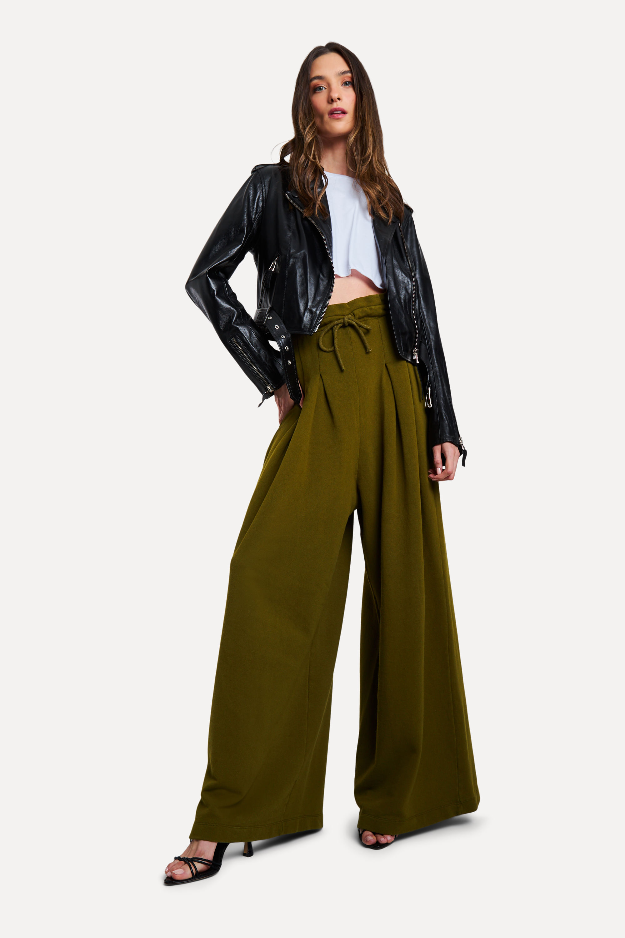 Confortável e cool, a calça de moletom verde oversized tem shape amplo e cintura alta. Você pode usar com tops mais sequinhos, de malha ou tricot, ou criar sobreposições para uma produção noturna.