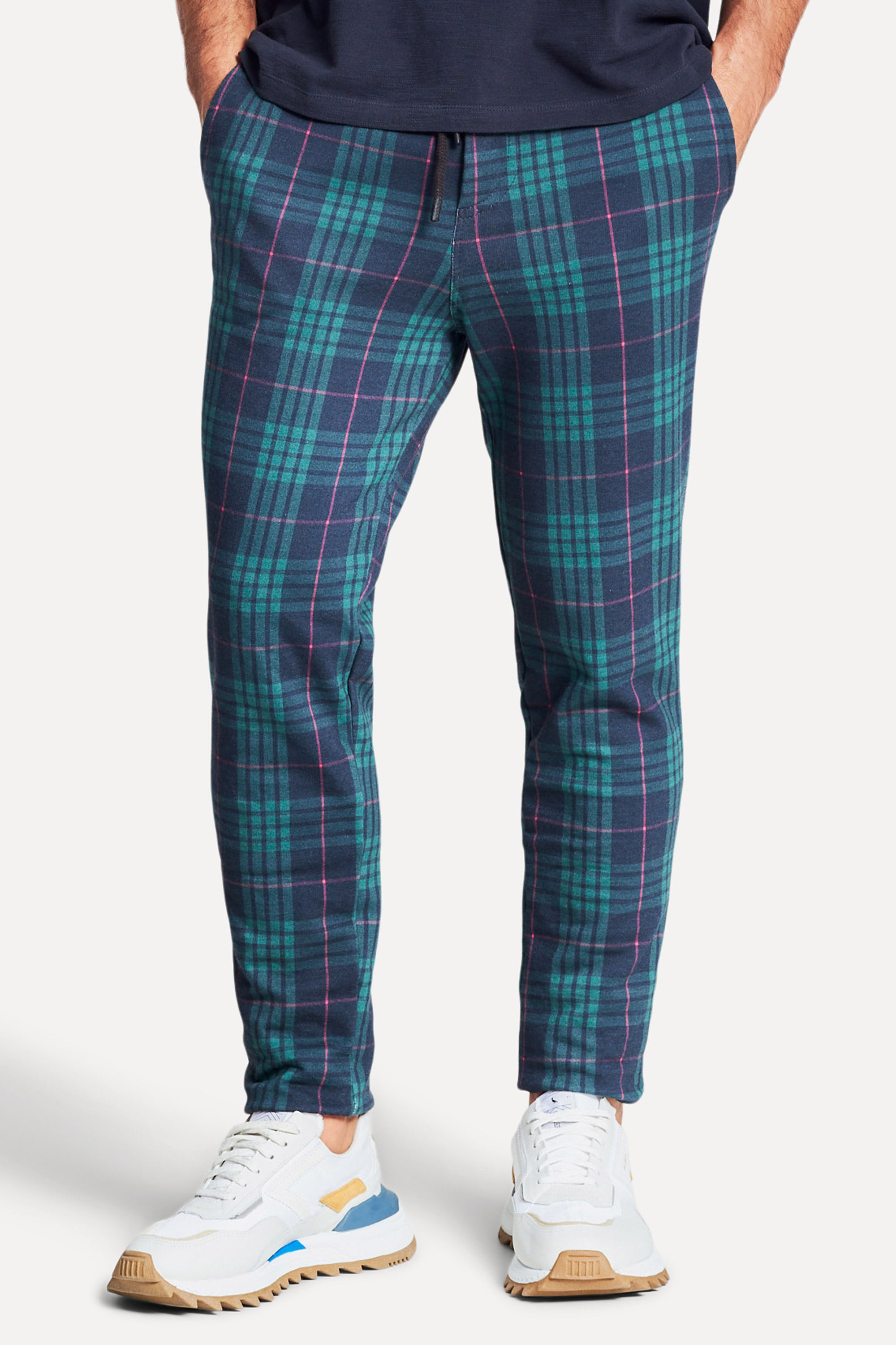 CALÇA EM MOLETOM ESTAMPADO XADREZ MADRAS. CÓS DA PRÓPRIA MALHA, COM ELÁSTICO E CADARÇO PRETO DE FÁCIL AJUSTE. METAIS EM BANHO PRETO. DETALHE EM PATCH PERSONALIZADO RESERVA, APLICADO NA PERNA FRENTE DO LADO ESQUERDO DE QUEM VESTE, PRÓXIMO AO BOLSO. BOLSOS FACA E BRAGUILHA FALSA. BARRA À FIO. UM BOLSO TRASEIRO DO LADO ESQUERDO DE QUEM VESTE. AVIAMENTAÇÃO TRICOLOR.