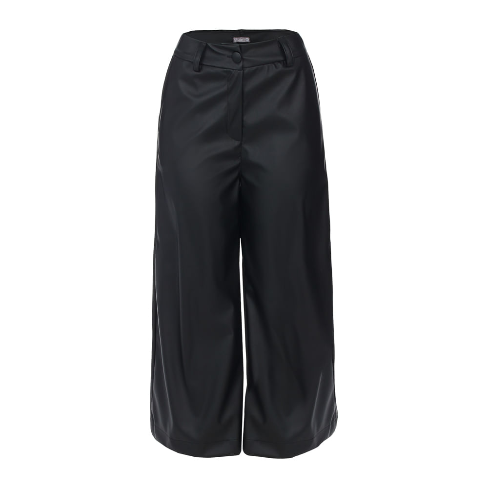 A Calça Pantacourt Cintura Alta de couro ecológico muito estilosa e cheia de charme aquela peça atemporal , pode ser usada para compor tanto looks casuais quanto para office look.<br>A Calça Pantacourt Cintura Alta pode combinar a peça com jaqueta jeans ,camisas além de T shirts sendo em produções monocromáticas ou não , com botas ou com o nosso Scarpin mule salto fino decote quadrado amêndoa o mesmo que nossa modelo está usando na foto para compor o look , sandália com salto bloco ,mule e até tênis para um visual mais despojado seja qual for a sua escolha você vai arrasar .<br>Poucas pessoas sabem mas a calça de couro ou chaparreira ,uma peça derivada das chapapeiras espanholas ,que surgiram para proteger as pernas dos cavaleiros quando cavalgavam no mato ,o começo de tudo foi em 1600 a meados de 1800. .<br><br>.<br>.<br><br>Produto: Calça Pantacourt Cintura Alta <br><br>Tecido: Pu <br>Composição: 100% Poliéster<br>Código: CAL2205PRT<br>Cor: Preto<br><br>Categoria: Saias.<br><br>Gênero: Feminino.<br><br>Marca: Vértice.<br>.<br><br><br>Medidas.<br><br>P - Busto até 90 cm l Cintura até 71 cm l Quadril até 99 Cm.<br><br>M - Busto até 96 cm l Cintura até 77 cm l Quadril até 102 cm.<br><br>G - Busto até 102 cm l Cintura 83 cm l Quadril 111 cm.<br><br>GG - Busto 108 cm l Cintura até 89 cm l Quadril até 117 cm.<br><br>EGG - Busto até 114 cm l Cintura até 95 cm l Quadril até 123 cm<br>