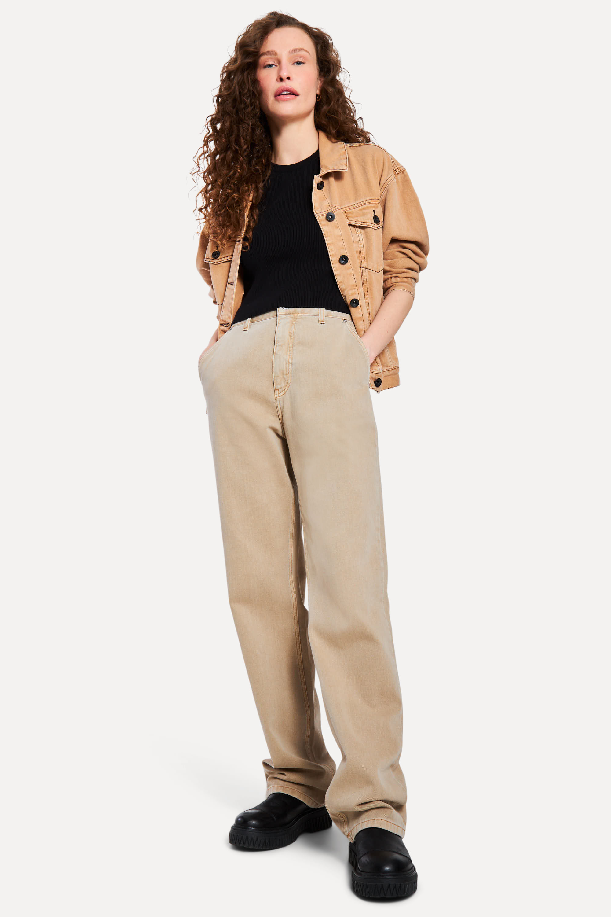 A Calça Sarja Wide Leg Color é uma peça atemporal, que está sempre na moda. Modelagem ajustada no quadril, pernas largas e cintura alta marcada, valorizam as curvas do corpo feminino. Seu tecido de algodão macio e encorpado proporciona um caimento perfeito, deixando as pernas mais soltas. É uma calça versátil e moderna, que pode ser usada em diversas ocasiões. Calça Jeans Reversa produzida eticamente no Brasil. Comprando esta peça, você viabiliza cinco pratos de comida através do nosso programa 1P5P. A modelo mede 1,74 m, 63 cm de cintura e 93 cm de quadril.
