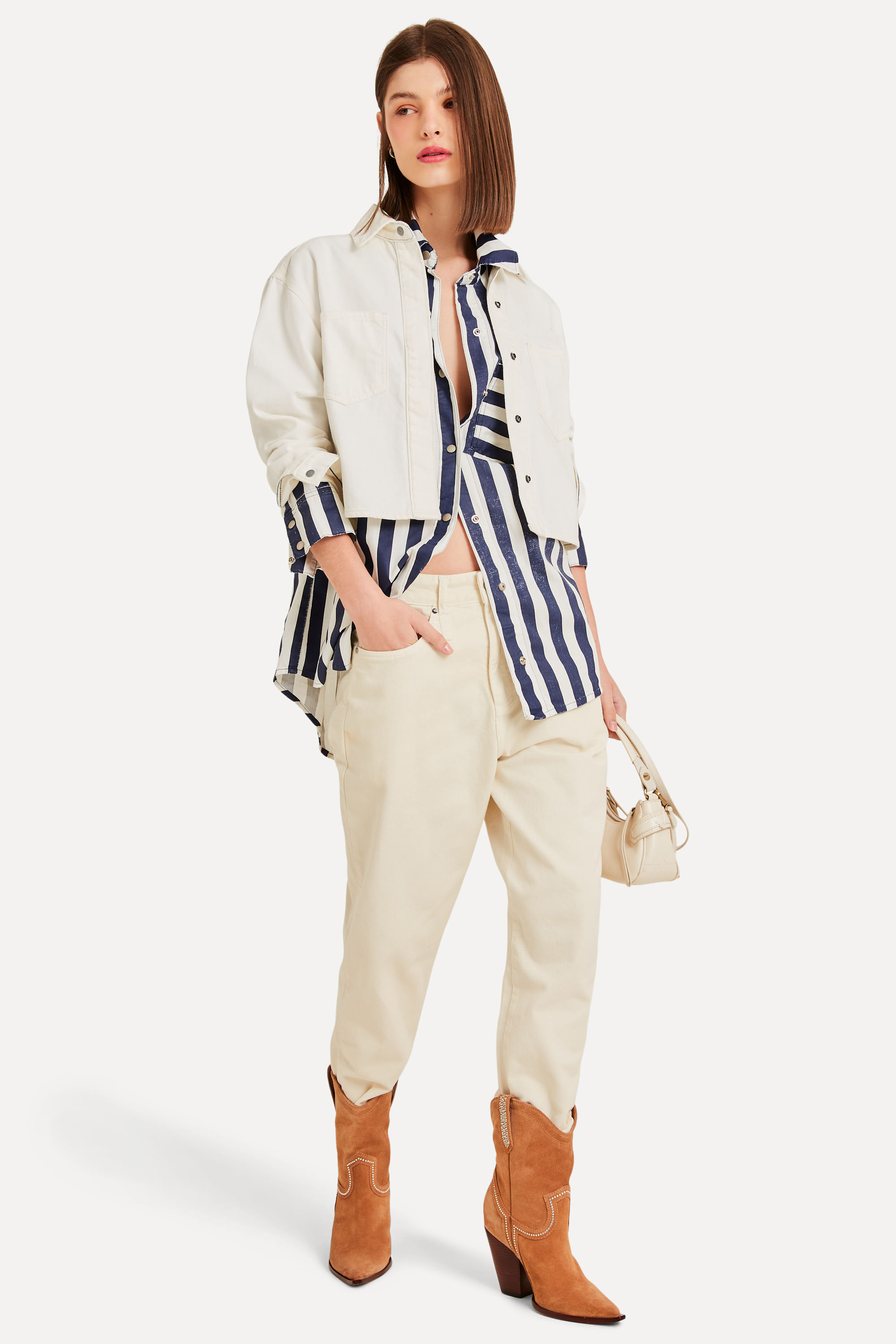 A Calça Sarja Wideleg Mila da Reversa é perfeita para quem busca conforto e estilo. Com modelagem Wide Leg, ela proporciona um caimento soltinho e moderno. O tecido é o que garante durabilidade e resistência. Versátil, essa calça pode ser usada com tops e sobreposições, camisas e t-shirts. Ideal para compor looks despojados e cheios de personalidade. Seja para o dia a dia ou para ocasiões especiais, essa calça é uma ótima opção. Aposte nessa peça e arrase no visual! A modelo tem 1,78 de altura e 83 de busto. Comprando esta peça, você viabiliza cinco pratos de comida através do nosso Programa 1P5P. Produto produzido eticamente no Brasil.