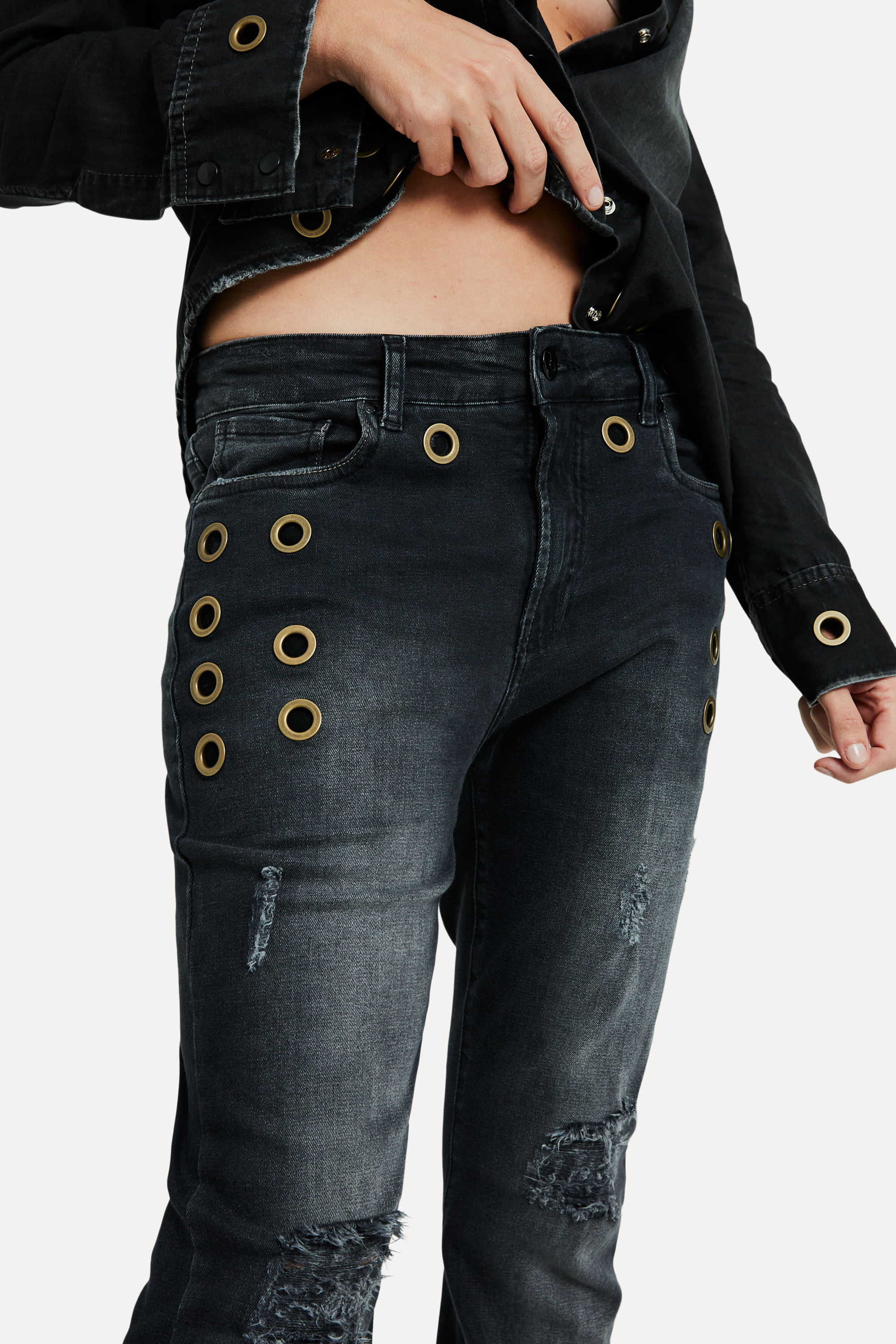 A Calça Yes Black Jeans Nina Flare é perfeita para mulheres modernas e urbanas. Sua modelagem flare traz um ar mais descontraído e moderno para a peça, que pode ser usada com peças mais secas, ou com a camisa da mesma família. A lavagem black jeans dá um toque de sofisticação à calça, e os ilhóses dão um toque de personalidade. É uma calça com ar mais urbano, que pode ser usada em diversas ocasiões. Calça Flare Reversa produzida eticamente no Brasil. Comprando esta peça, você viabiliza cinco pratos de comida através do nosso programa 1P5P. A modelo mede 1,76 m de altura, 60 cm de cintura e 90 cm de quadril.