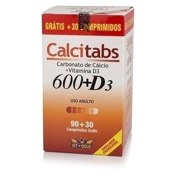 Calcitabs 600mg + Dda Vit Gold é um suplemento feito à base de carbonato de cálcio e enriquecido com vitamina D3.<br> <br> Recomendação de consumo:<br> Sugere-se 1 comprimido ao dia durante a principal refeição ou conforme orientação médica ou do nutricionista.
