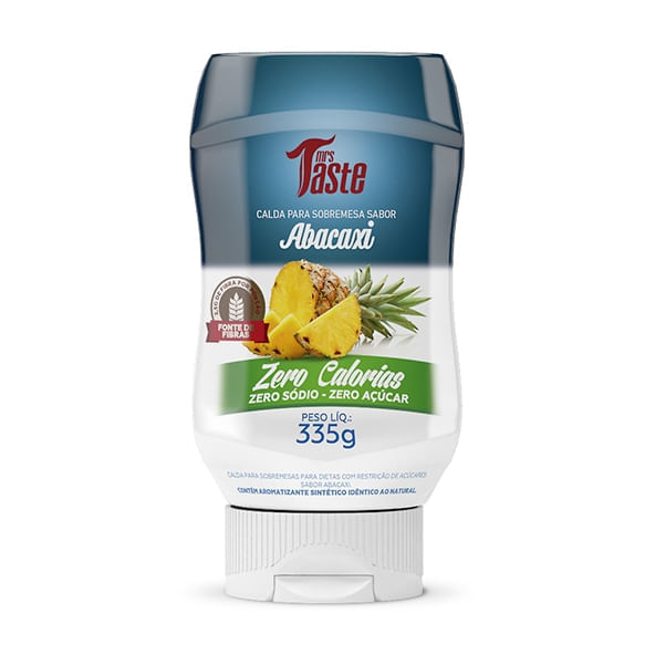 Informações técnicas do produto:<br> A Calda para Sobremesa Abacaxi, 335g, Mrs Taste, é elaborado com polpa de abacaxi integral, uma fruta rica em vitaminas e minerais. Uma calda deliciosa, pronta para o consumo, sem adição de açúcar, zero sódio e calorias, ideal para quem deseja uma alimentação equilibrada sem abrir mão do sabor.<br> <br> Informações sobre os ingredientes:<br> Abacaxi: rico em vitamina A e vitamina C que ajudam aumentar a imunidade, além de manganês, magnésio, potássio, fósforo, cálcio e ferro. O abacaxi contém a enzima bromelina, que ajuda na quebra de proteínas em aminoácidos auxiliando na sua absorção;<br> Polidextrose: favorece o bom funcionamento intestinal, além de prolongar a sensação de saciedade e ajudar a controlar a glicemia e o colesterol.<br> Recomendação de consumo:<br> Pode ser adicionado em diversas preparações, como panquecas e waffles, ou em outras preparações que desejar.<br> <br> Motivos para escolher esse produto?<br> Sem lactose<br> Sem glúten<br> Zero sódio<br> Sem adição de sal<br> Sem adição de açúcar<br> 0% de gordura<br> Pronto para o consumo<br> Fonte de fibras<br> Informações sobre a marca:<br> Os temperos Mrs. Taste foram desenvolvidos com o intuito de proporcionar aos seus consumidores uma alimentação mais saudável, de forma rápida e prática. Os temperos Mrs. Taste são fabricados pela SmartFoods, uma empresa voltada à produção de refeições prontas e temperos saudáveis. Todos os produtos são desenvolvidos por nutricionistas, visando sempre atender pessoas que buscam mais qualidade de vida por meio da alimentação equilibrada.