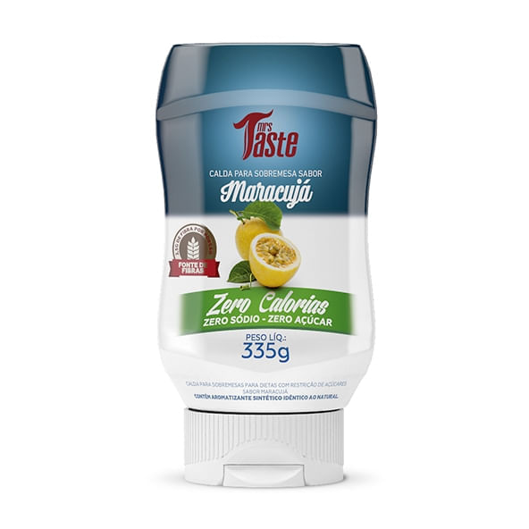Informações técnicas do produto:<br> <br> A Calda para Sobremesa Maracujá, 335g, da Mrs Taste, é elaborado com suco de maracujá, uma fruta rica em vitaminas e minerais. Uma calda deliciosa, pronta para o consumo, sem adição de açúcar, zero sódio e calorias, ideal para quem deseja uma alimentação equilibrada sem abrir mão do sabor.<br> <br> Recomendação de consumo:<br> <br> Pode ser adicionado em diversas preparações, como panquecas e waffles, ou em outras preparações que desejar.<br> <br> Por que escolher esse produto?<br> Sem lactose<br> Sem glúten<br> Zero sódio<br> Sem adição de sal<br> Sem adição de açúcar<br> 0% de gordura<br> Pronto para o consumo<br> Fonte de fibras<br> Sobre a marca:<br> <br> Os temperos da Mrs. Taste foram desenvolvidos com o intuito de proporcionar aos seus consumidores uma alimentação mais saudável, de forma rápida e prática. Os temperos Mrs. Taste são fabricados pela SmartFoods, uma empresa voltada à produção de refeições prontas e temperos saudáveis. Todos os produtos são desenvolvidos por nutricionistas, visando sempre atender pessoas que buscam mais qualidade de vida por meio da alimentação equilibrada.