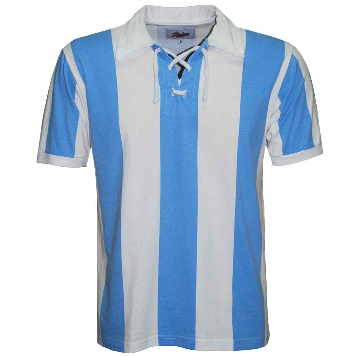 Relembre a época de ouro do futebol! Quando de fato torcer era mais prazeroso e tínhamos jogadores diferenciados, no Brasil e no mundo. <br /> Apresentamos a você uma grande variedade de camisas retrô, de clubes brasileiros, seleções e clubes internacionais.<br /> O manto foi produzido com tecido 100% algodão premium, toque macio e confortável. <br /> O escudo retrô mantém a originalidade da peça. Uso casual, indicado para momentos de lazer e ir ao estádio.<br /> <br /> Sku: arg-cor<br /> <br /> Características:<br /> <br /> Nome: Camisa Argentina 1930 Liga Retrô - Listrada<br /> Gênero: Masculino<br /> Faixa etária: Adulto<br /> Indicado: Dia a Dia<br /> Marca: Liga Retrô<br /> Clube: Nacional<br /> Time: Argentina<br /> Manga: Curta<br /> Gola: Polo com corda <br /> Cor predominante: Azul e branco<br /> Estilo da peça: Retrô<br /> Composição do Tecido/Material: Algodão<br /> Personalização: Não permite<br /> Garantia de Fabricação: 3 meses<br /> <br /> Tabela de medidas:<br /> Dimensões Aproximadas (Largura x Altura)<br /> <br /> Manga Curta<br /> <br /> P: 53.5 x 68.5cm<br /> M: 55.5 x 70.5 cm<br /> G: 57.5 x 73.5 cm<br /> GG: 59.5 x 75.5 cm<br /> GGG: 61 x 79 cm<br /> 4G: 63 X 82 cm<br /> <br /> Informações adicionais:<br /> <br /> Não realizamos personalização.<br /> <br /> Conteúdo da embalagem:<br /> 1 Camisa Argentina 1930 Liga Retrô - Listrada