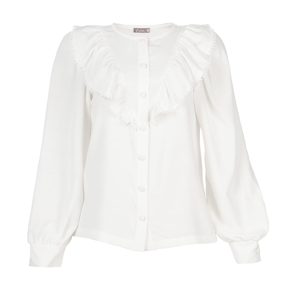 A Camisa Babado Manga Ampla com babado com renda frontal ,com botões com manga longa tecido confortável e leve , pra você que quer uma peça cheia de estilo com muito conforto ela é perfeita.<br><br>A Camisa Babado Manga Ampla é uma peça muito versátil ,caso queira fazer conjunto temos a calça pantacourt fluida que dá um Up na sua produção ,ela pode ser usada tanto em um office look como em looks mais despojados ,para o trabalho use peças com a cintura alta ,como saias e calças de alfaiataria que deixam o visual mais formal mas sem deixar de ser moderno ,abuse dos sapatos de salto do bico fino e mules para deixar seu look mais elegante ,já para um visual mais casual ela fica perfeita com jeans como ambas são peças mais básicas invista nos acessórios como mais colar brincos ,se optar por um modelo mais reto pode usar com tênis ,saia os modelos Midi com tecidos leves e soltos trazem delicadeza a combinação ,caso queira um ar mais divertido coloque um tênis branco seja qual for sua escolha você vai arrasar.<br><br><br><br>Produto : Camisa Babado Manga Ampla <br>Código : CAM2207OFF<br>Categoria: Blusas.<br><br>Cor: Off White<br>Manga: Curta.<br><br>Gola: Redonda <br>Tecido: Crepe<br>Composição : 100% Poliéster<br>Peso :300 g<br>Gênero: Feminino.<br><br>Marca: Vértice<br><br>Medidas.<br><br><br>P - Busto até 90 cm l Cintura até 71 cm l Quadril até 99 Cm.<br><br><br>M - Busto até 96 cm l Cintura até 77 cm l Quadril até 102 cm.<br><br><br>G - Busto até 102 cm l Cintura 83 cm l Quadril 111 cm.<br><br><br>GG - Busto 108 cm l Cintura até 89 cm l Quadril até 117 cm.<br><br><br>EGG - Busto até 114 cm l Cintura até 95 cm l Quadril até 123 cm.<br>