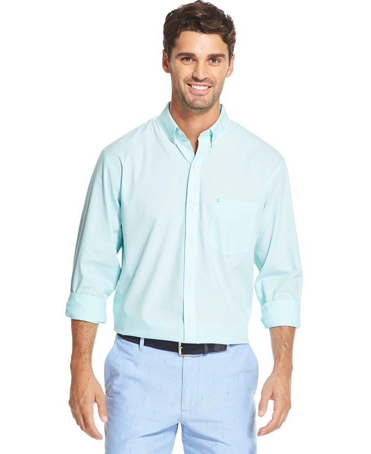 A camisa em micro listras manga longa em azul piscina da IZOD tem uma modelagem regular, com abotoamento button-down no colarinho e bolso chapado no peito. É uma ótima opção para quem busca trazer cor para o guarda roupa . Funciona bem no dia a dia do trabalho como também em looks mais casuais. É fabricada em 100% algodão , o que a torna super confortável, fácil de lavar e secar.
