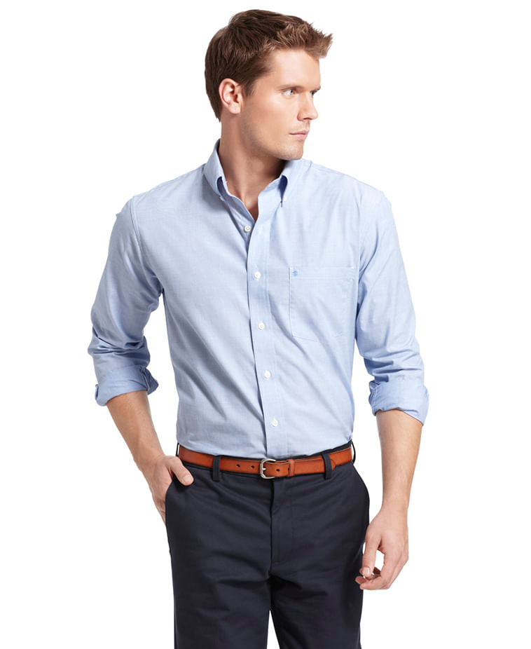A camisa manga longa em tricoline lisa azul da IZOD tem uma modelagem regular, com um bolso chapado no peito , e com abotoamento button-down no colarinho .É uma camisa essencial para o homem moderno, e uma peça chave para o dia a dia do trabalho e para os finais de semana .É fabricada em 100% algodão , e como toda fibra natural , a torna super confortável, respirável, fácil de lavar e secar .