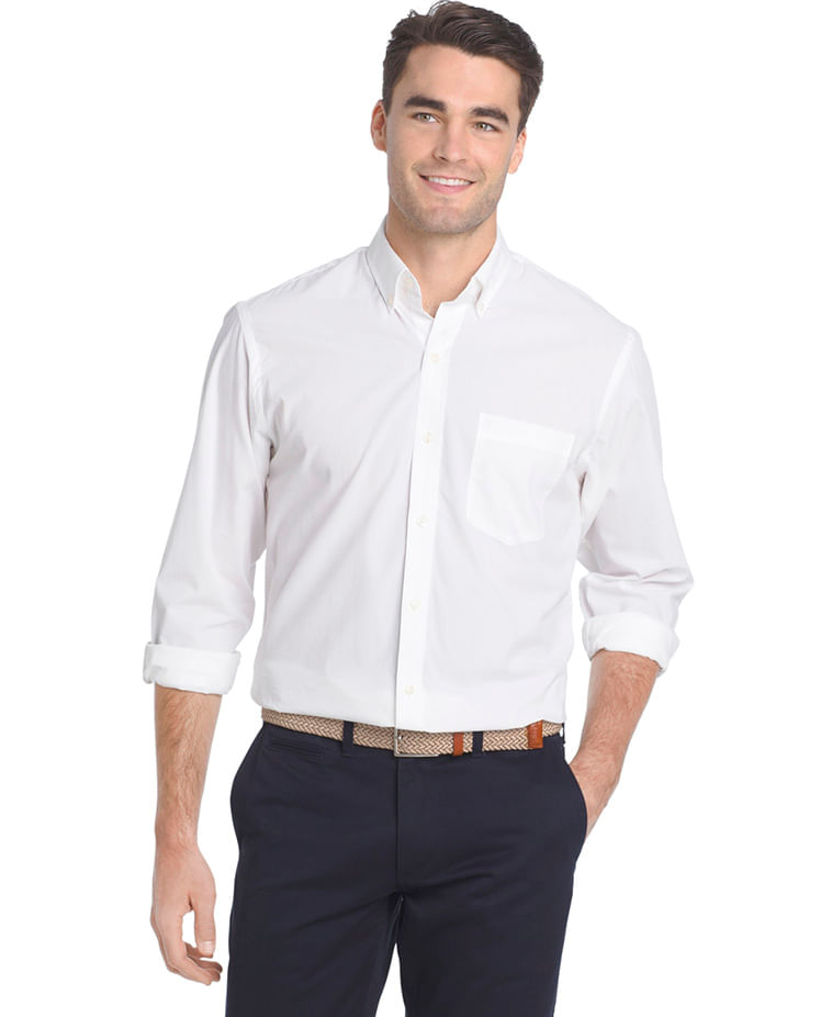A camisa manga longa em tricoline lisa branca da IZOD tem uma modelagem regular, com um bolso chapado no peito , e com abotoamento button-down no colarinho .É uma camisa essencial para o homem moderno, e uma peça chave para o dia a dia do trabalho e para os finais de semana .É fabricada em 100% algodão , e como toda fibra natural , a torna super confortável, respirável, fácil de lavar e secar .