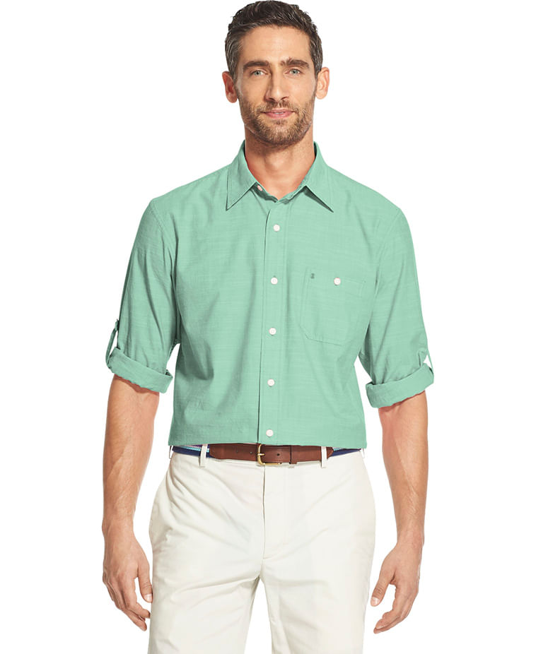 A camisa em chambray manga longa em verde água da IZOD tem uma modelagem regular, com abotoamento button-down no colarinho é uma excelente opção para o dia dia de homens modernos. Vêm com martingales nas mangas , que permite usá-la com as mangas dobradas. Super básica , para o dia a dia do trabalho como também em looks mais casuais. É fabricada em 100% algodão , o que a torna super confortável, fácil de lavar e secar.