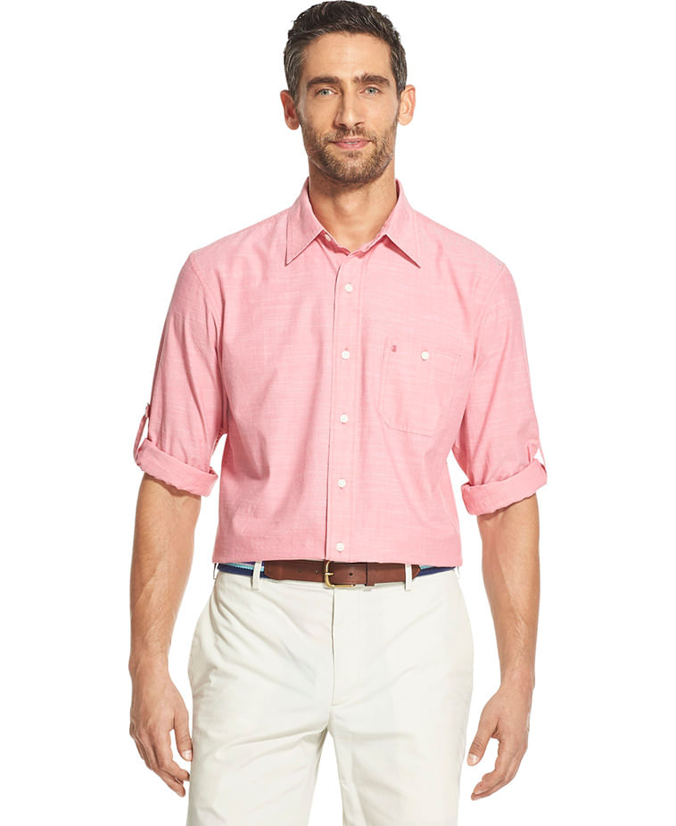 A camisa em chambray manga longa em rosa melancia da IZOD tem uma modelagem regular, com abotoamento button-down no colarinho é uma excelente opção para o dia dia de homens modernos. Vêm com martingales nas mangas , que permite usá-la com as mangas dobradas. Super básica , para o dia a dia do trabalho como também em looks mais casuais. É fabricada em 100% algodão , o que a torna super confortável, fácil de lavar e secar.