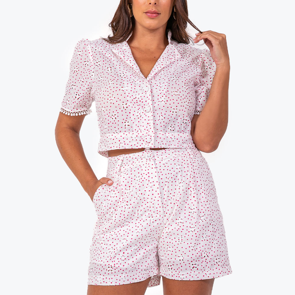 Camisa feminina confeccionada em laise, um tecido com bordados florais delicados; O modelo da camisa feminina conta com estampa em poás coloridos, mangas curtas fluídas e fechamento frontal por botões duplos; As camisas de manga curta femininas são versáteis e podem ser usadas no dia a dia ou no office look; Para um visual corporativo, aposte com uma calça preta de alfaiataria e sandálias de salto bloco; Para um visual moderno e descontraído, invista com bermuda de linho colorido e arremate com uma sandália flatform; As camisas femininas são perfeitas para compor aquele look com um toque elegante na sua produção do dia a dia; Assim como as fashionistas, combine outras peças super trend para completar o visual ideal;<br><br>.<br><br><br>Produto: Camisa Curta Laise Rosa<br>Categoria: Blusas<br>Cor: Rosa<br>Manga: Manga Curta <br>Gola: Gola Camisa <br>Tecido: Laise Poa <br>Composição : 90% Poliester/10% algodão<br>Peso :200 g<br>Gênero: Feminino<br>Marca: Vértice<br>.<br><br><br><br>Medidas.<br><br>P - Busto até 90 cm l Cintura até 71 cm l Quadril até 99 Cm.<br>M - Busto até 96 cm l Cintura até 77 cm l Quadril até 102 cm.<br>G - Busto até 102 cm l Cintura 83 cm l Quadril 111 cm.<br>GG - Busto 108 cm l Cintura até 89 cm l Quadril até 117 cm.<br>EGG - Busto até 114 cm l Cintura até 95 cm l Quadril até 123 cm.<br><br><br><br><br><br><br><br><br><br><br><br><br><br><br><br><br><br><br><br><br><br><br><br><br><br><br><br><br><br><br><br><br>