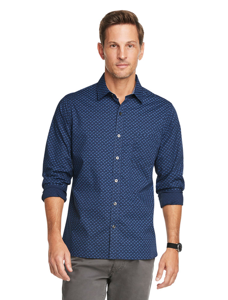 A camisa manga longa miniprint cashmere em azul marinho da VAN HEUSEN tem uma modelagem slim, com um bolso chapado no peito .Pé de gola interno em contraste. Peça ideal para o homem moderno . Pode ser usada no trabalho ou fins de semana .Tem algodão em sua composição que a torna super confortável, respirável, fácil de lavar e secar.