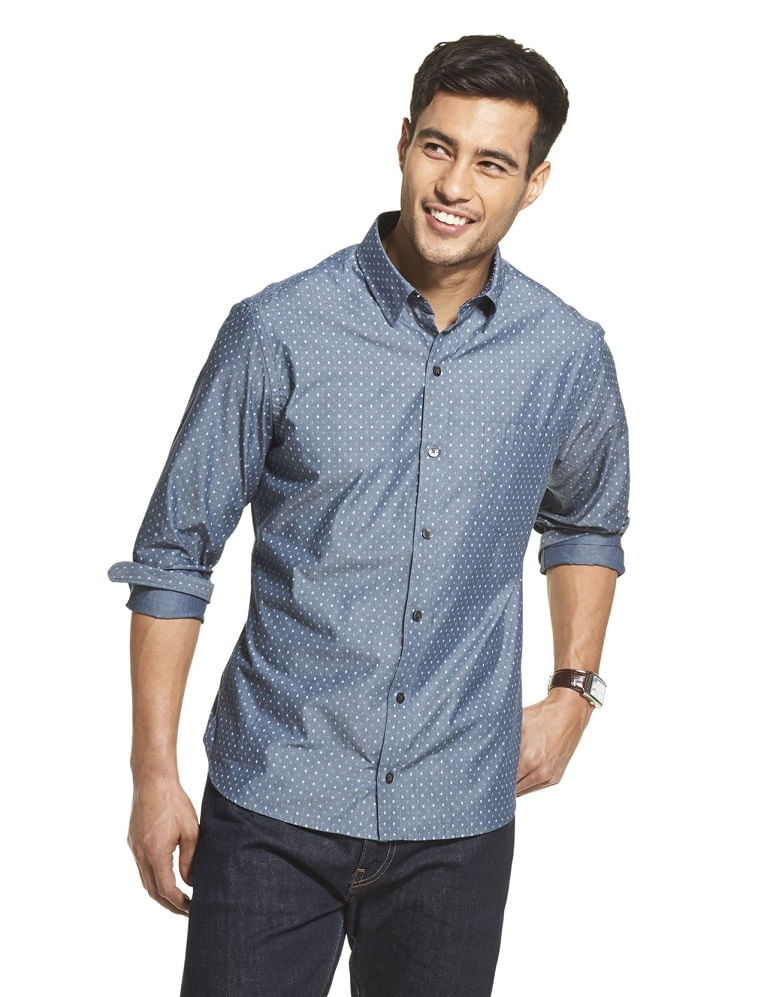 A camisa manga longa miniprint gráfica em azul marinho da VAN HEUSEN tem uma modelagem regular, com um bolso chapado no peito .Pé de gola interno em contraste. Peça ideal para o homem moderno . Pode ser usada no trabalho ou fins de semana .Tem algodão em sua composição que a torna super confortável, respirável, fácil de lavar e secar.