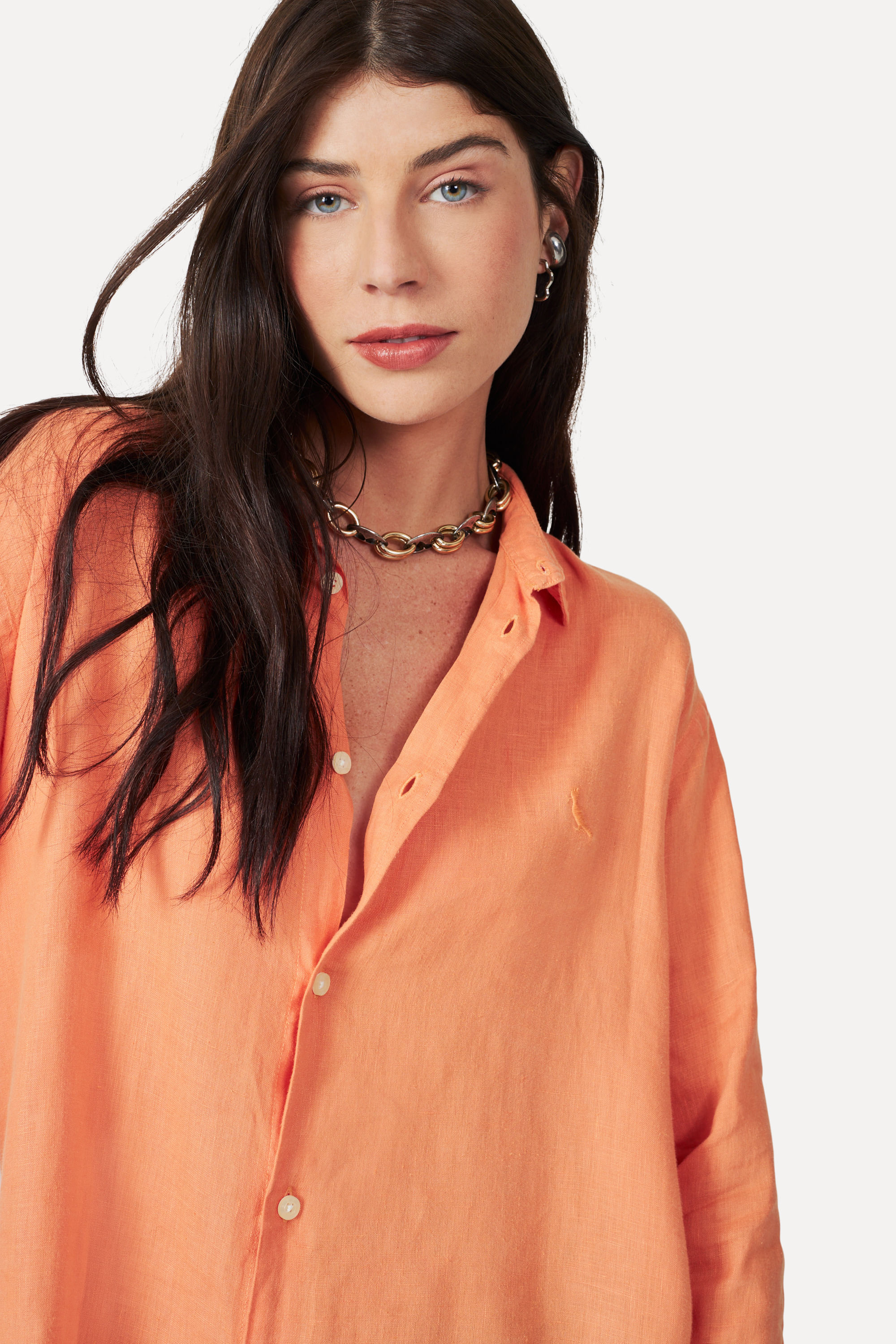 A Camisa Linen Básica é perfeita para compor looks modernos e versáteis. Feita de linho, possui caimento solto ao corpo, manga longa e barra arredondada. Combine com as calças jeans da Reversa e arrase! A modelo tem 1,79 de altura, 88 de busto e veste 38. Comprando esta peça, você viabiliza cinco pratos de comida através do nosso Programa 1P5P. Camisa produzida eticamente no Brasil.