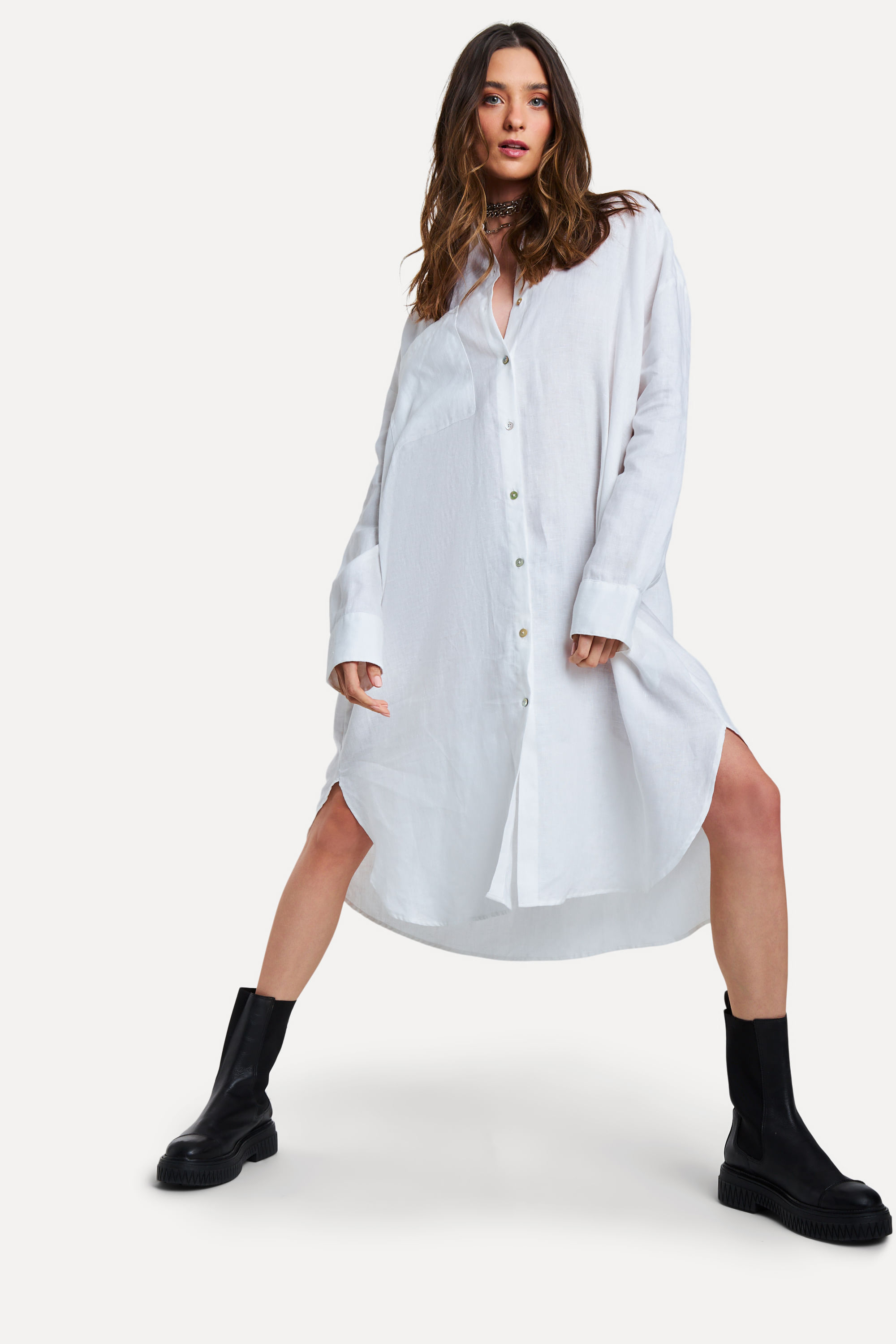 Aposte nos clássicos! A camisa de linho branca tem shape ajustado e é perfeita para usar com alfaiataria e calças de cintura alta. Combine também com jeans para uma pegada casuais e sobreponha com jaquetas de couro ou tricots.