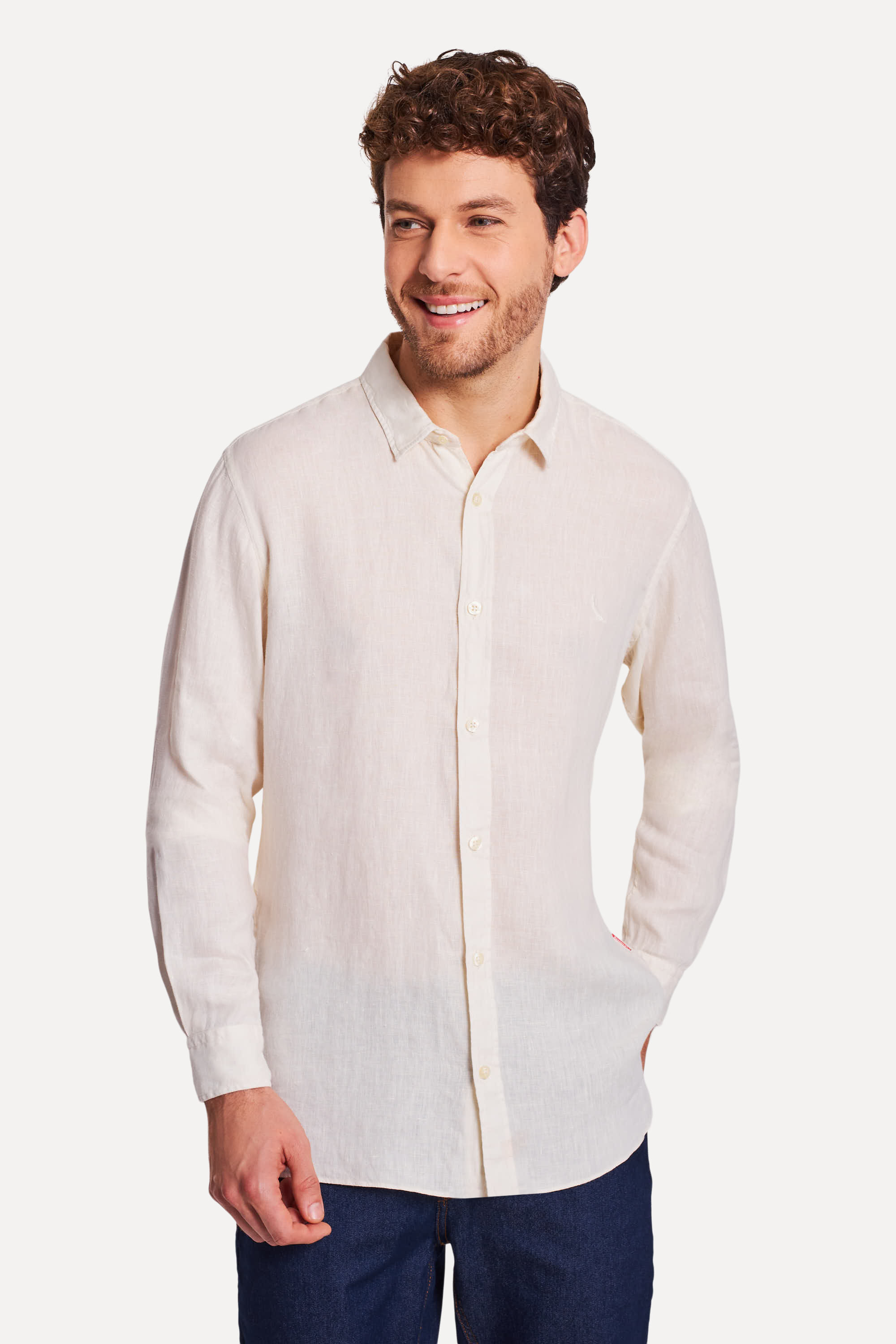 A Camisa Linho Praia é elegante, leve, fresca e perfeita pra adicionar mais charme a visuais casuais. Ela funciona super bem em momentos descontraídos em que você quer vestir uma camisa, mas não necessariamente estar formal. Combina bem com jeans ou sarja. Camisa Reserva produzida eticamente no Brasil. Comprando esta peça, você viabiliza cinco pratos de comida através do nosso programa 1P5P.