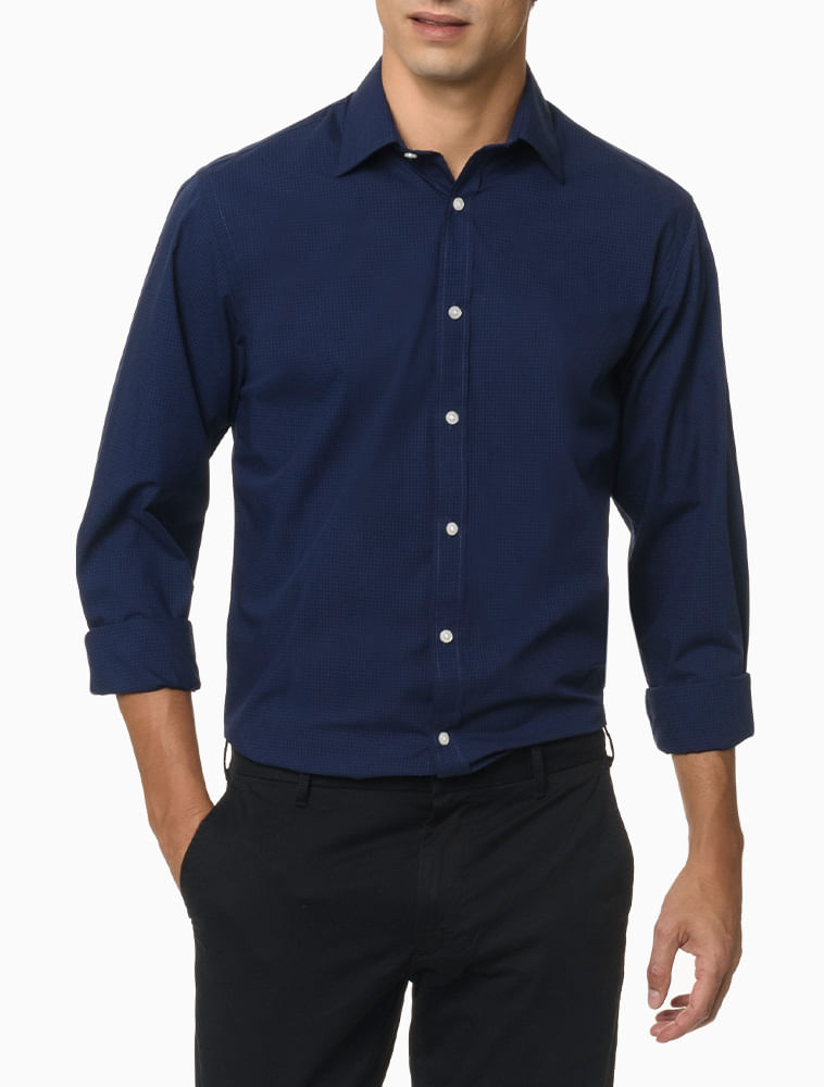 Camisa Manga Longa Micro Xadrez Izod - Azul Escuro