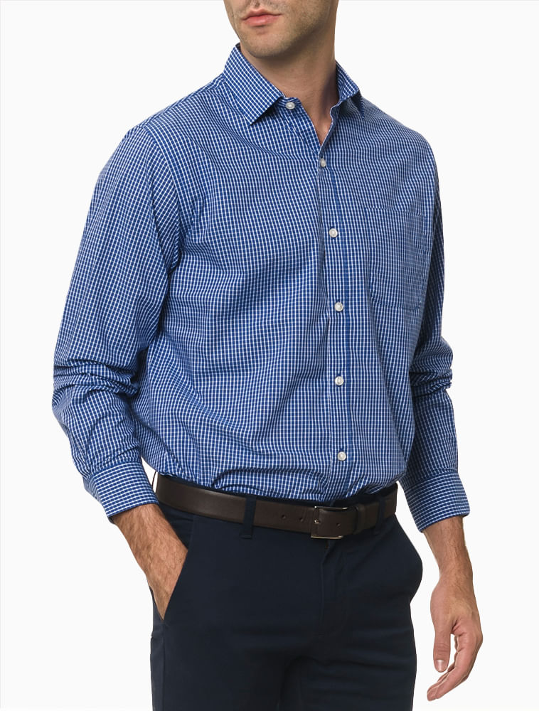 Camisa Manga Longa Regular Xadrez Van Heusen - Azul Médio