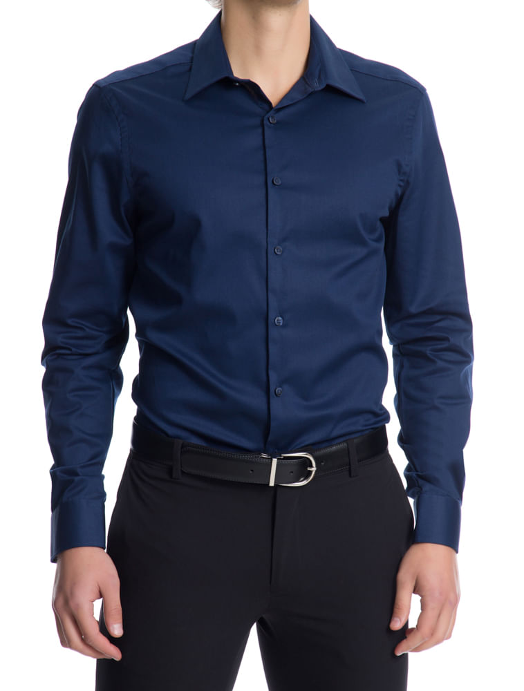 Camisa Manga Longa Slim Fit Van Heusen - Azul Marinho