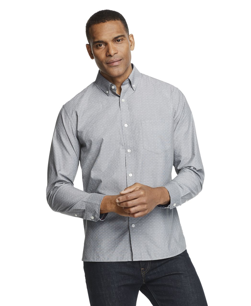 Camisa Manga Longa Slim Mini Jacquard Van Heusen - Cinza Médio
