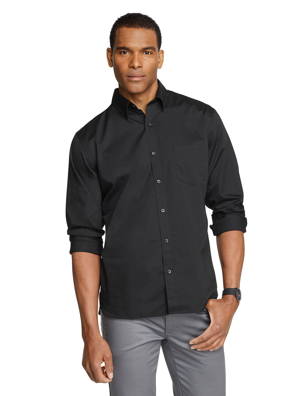 Camisa Manga Longa Slim Tricoline Básica Van Heusen - Preto