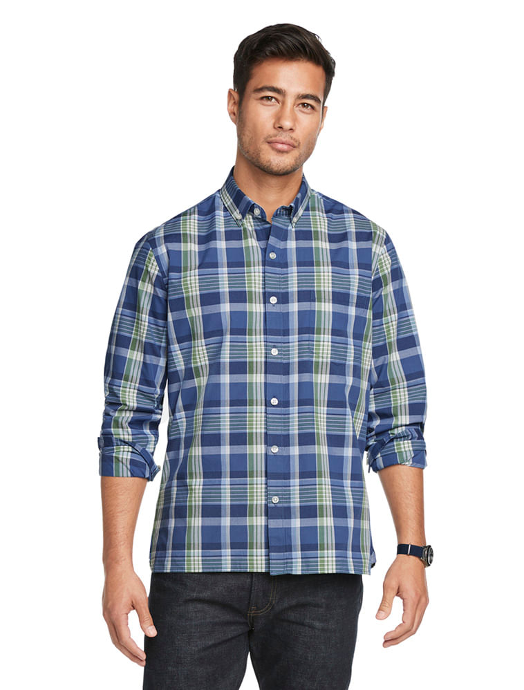 A camisa manga longa maxi xadrez azul e verde da VAN HEUSEN tem uma modelagem regular, com um bolso chapado no peito . Colarinho button-down. Pé de gola em tecido estampado em contraste .É uma excelente opção para um look bem casual para o dia a dia do homem moderno. Tem algodão em sua composição que a torna super confortável, respirável, fácil de lavar e secar.