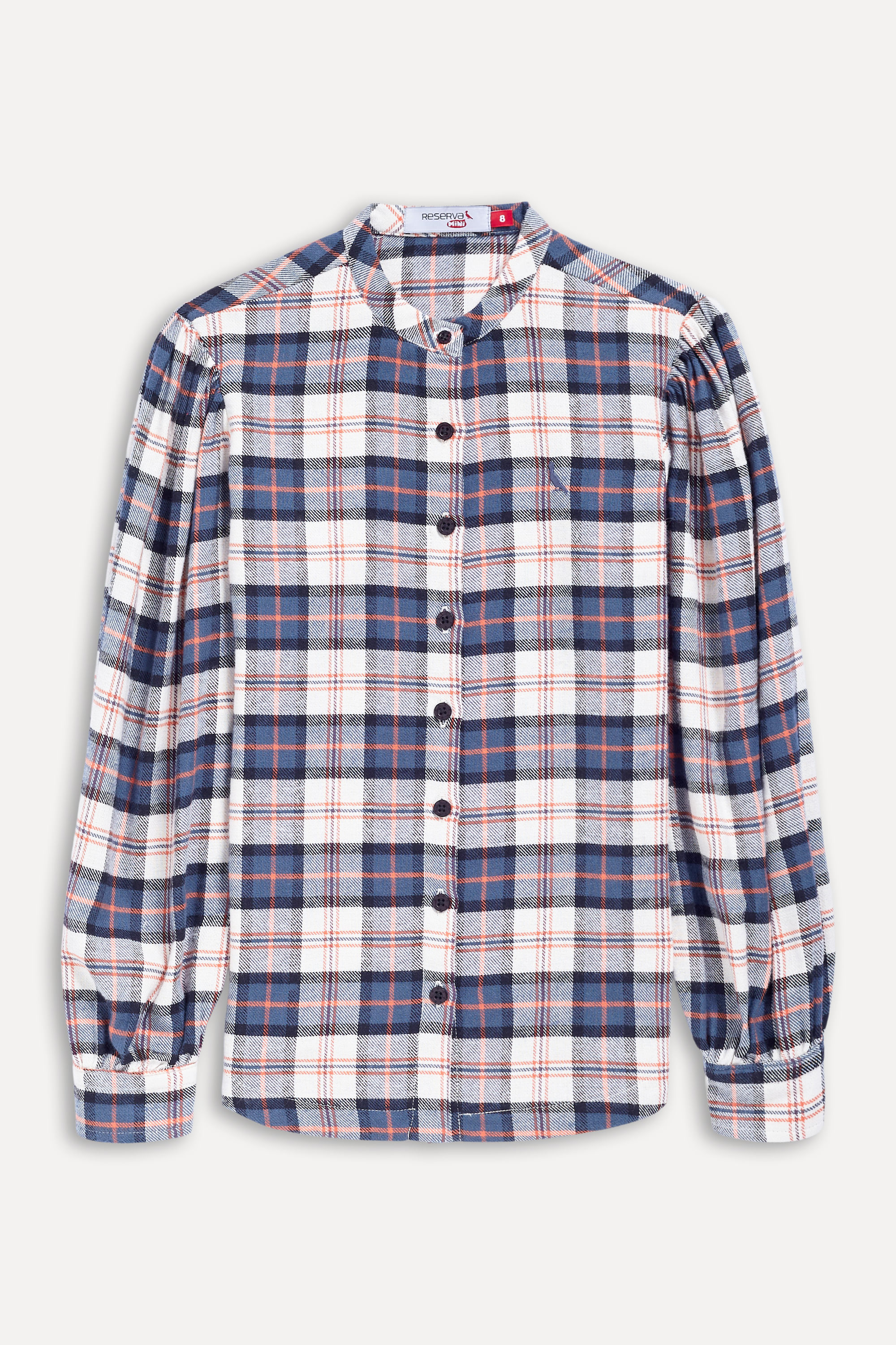 Camisa manga longa. A peça é confeccionada em flanela fio tinto xadrez 100% algodão. A pate e a gola careca levam botões pérola. As mangas longas são levemente franzidas no topo e punho. A assinatura fica por conta do bordado Pica pau no busto. Produzido eticamente no Brasil. Comprando esta peça, você complementa cinco pratos de comida através do nosso programa 1P=5P.