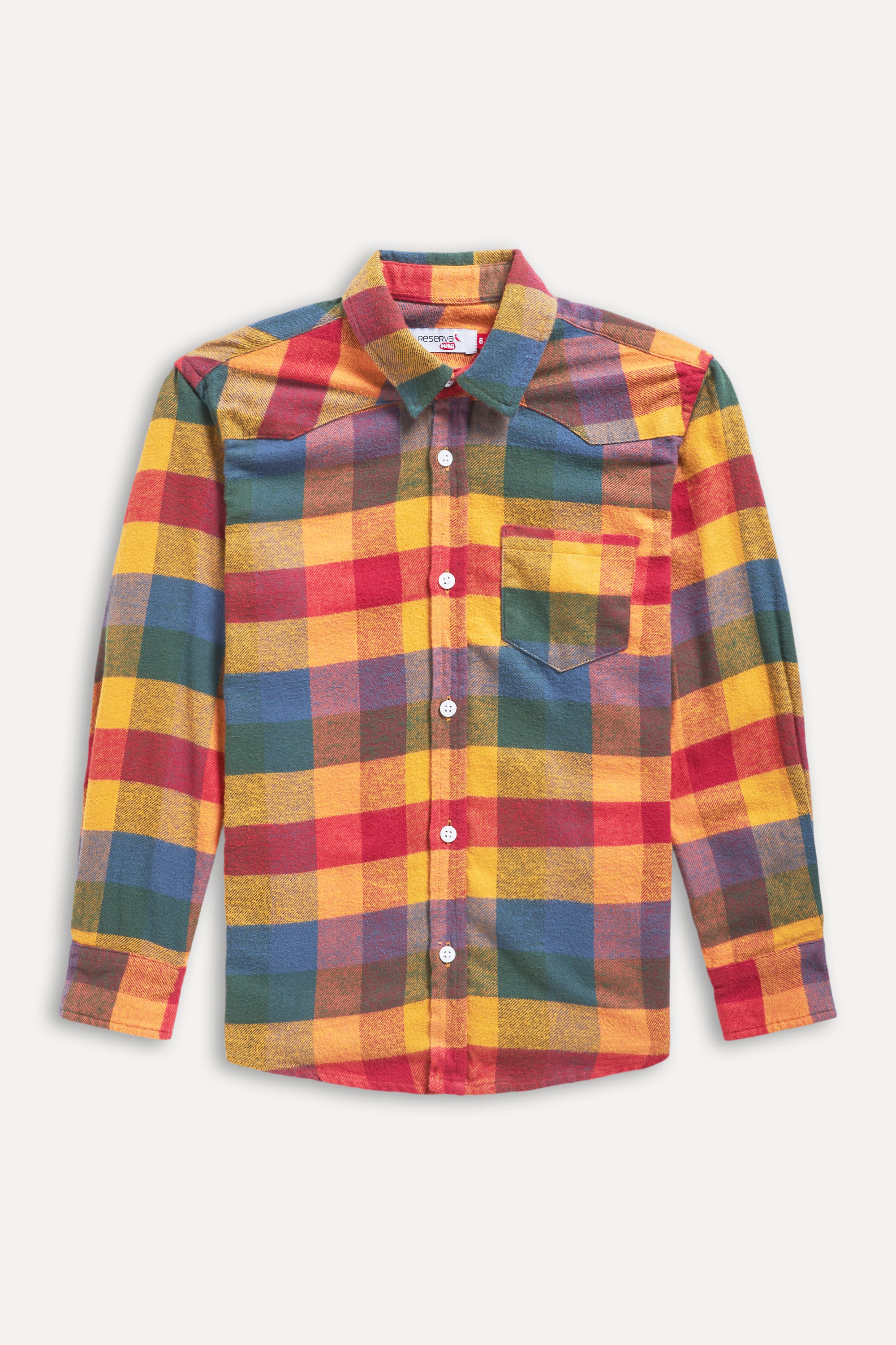 Camisa manga longa xadrez fogueira. A peça é confeccionada em flanela fio tinto xadrez 100% algodão. Possui 1 bolso na frente na altura do busto e assinatura fica por conta do bordado Pica pau na pala costas. Possui botões foscos brancos na pate e no pe de gola. Produzido eticamente no Brasil. Comprando esta peça, você complementa cinco pratos de comida através do nosso programa 1P=5P.