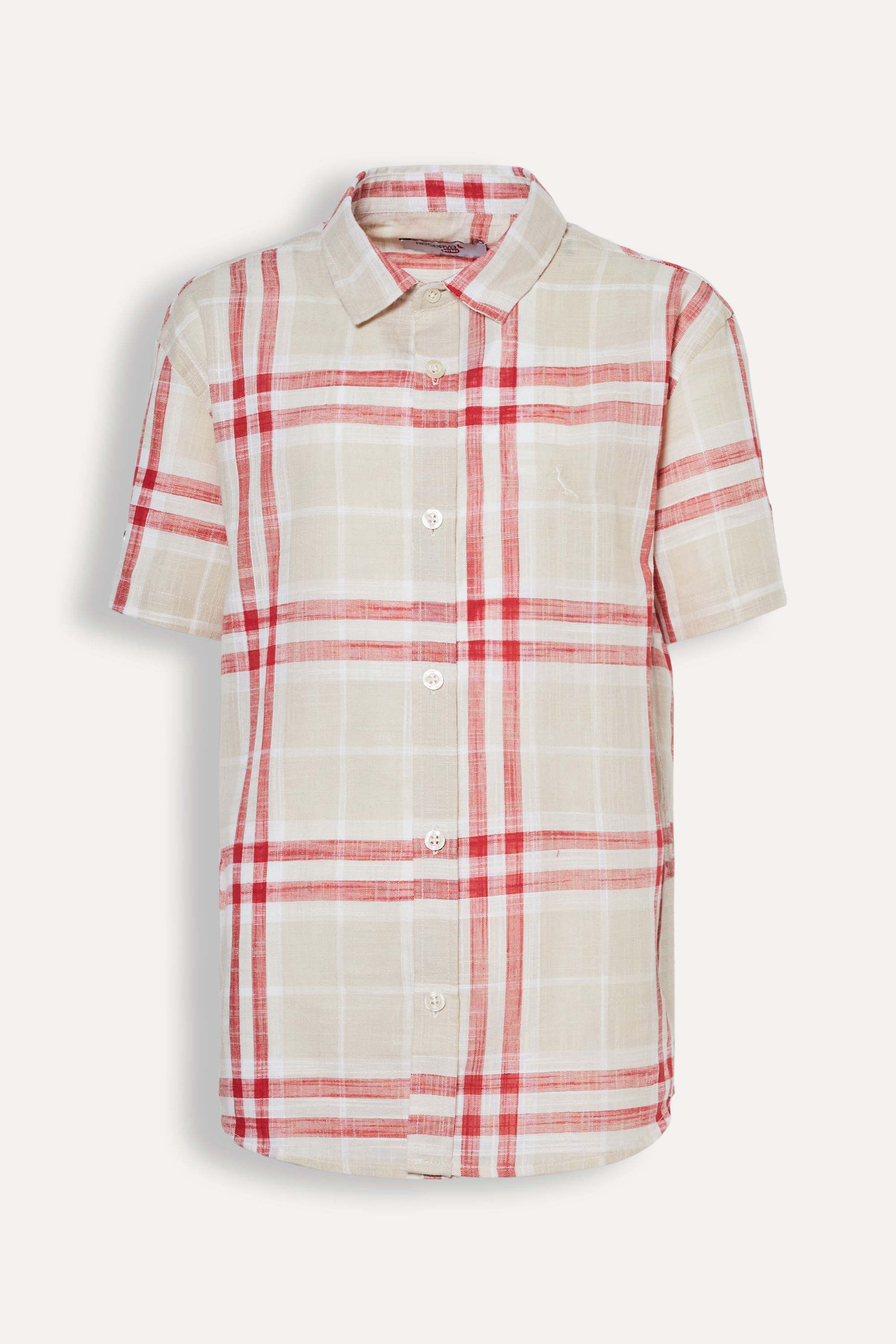 Deixe o Mini sempre arrumadinho com a Camisa Mini MC Isac. Feita em algodão de alta qualidade, proporciona muito conforto. Possui manga curta e fechamento frontal por botões. Combine com calças ou bermudas, tênis ou chinelos. Comprando esta peça, você viabiliza cinco pratos de comida através do nosso Programa 1P5P. Camisa produzida eticamente no Brasil.